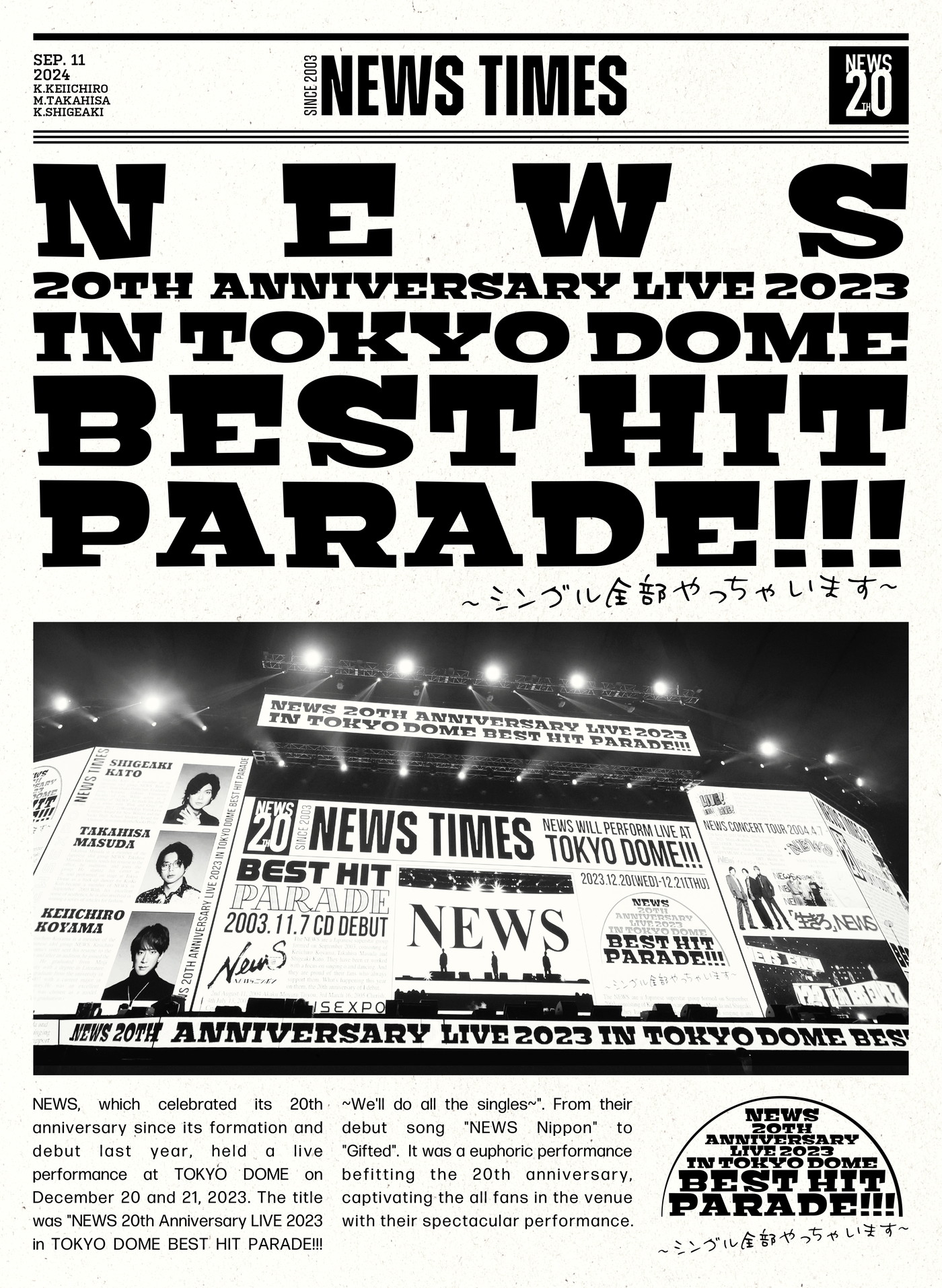 Blu-ray&DVD『NEWS 20th Anniversary LIVE 2023 in TOKYO DOME BEST HIT PARADE!!!~シングル全部やっちゃいます~』