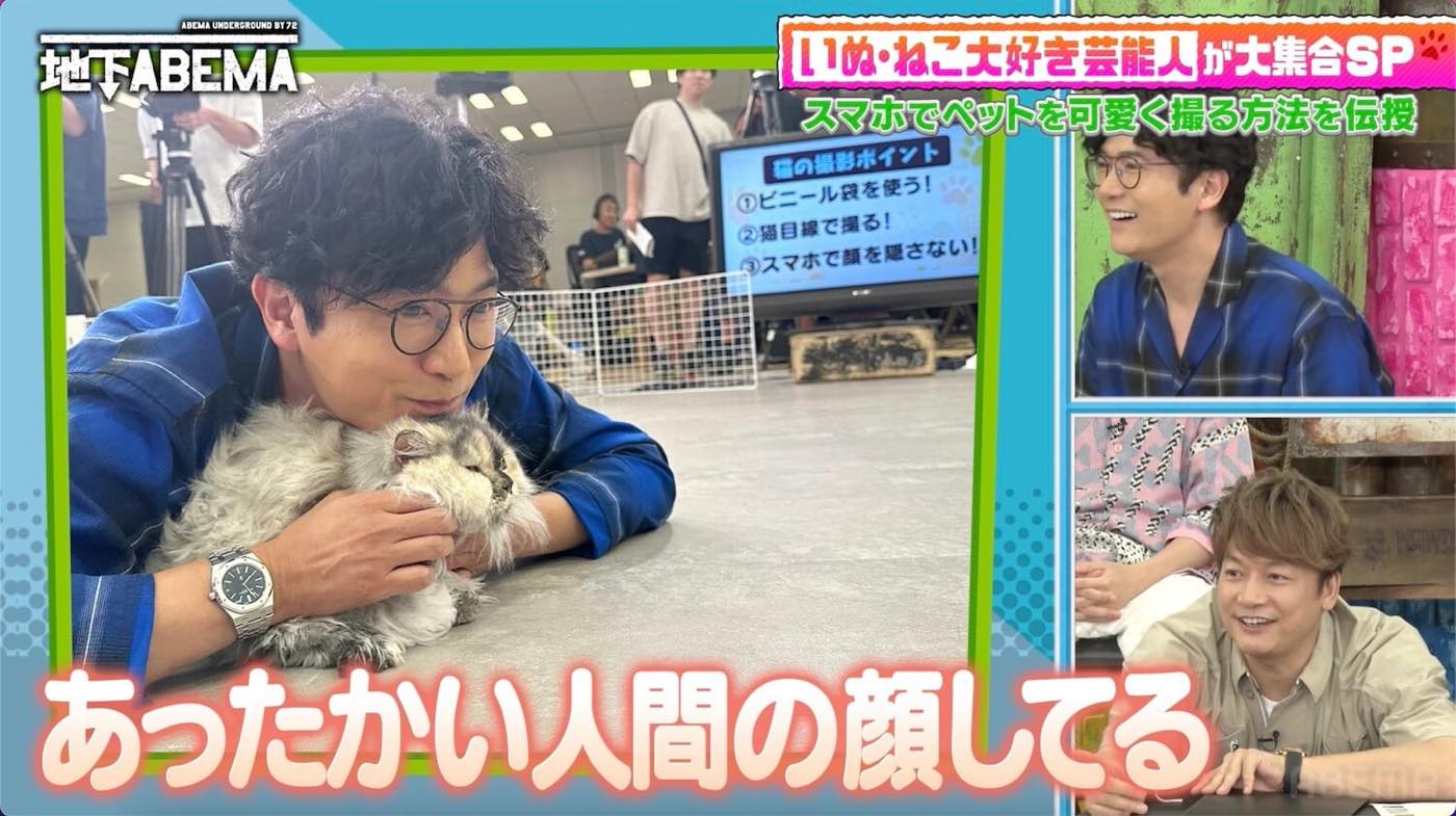 さらに番組では、動物写真家が犬や猫をかわいく撮影するコツを伝授。稲垣は大好きな猫と大はしゃぎで写真を撮影すると、それを見た香取は「(稲垣が)あたたかい人間の顔をしている」と稲垣の新たな一面に感動したと言わんばかりの様子でコメント。草なぎは「毎回ななにーで吾郎さんの楽屋に猫を…」と冗談を飛ばし、スタジオを沸かせた。ほかにも、豪華芸能人がペットの魅力や自慢のペットとのお宝写真を公開した『ななにー 地下ABEMA』#39は現在「ABEMA」にて配信中。