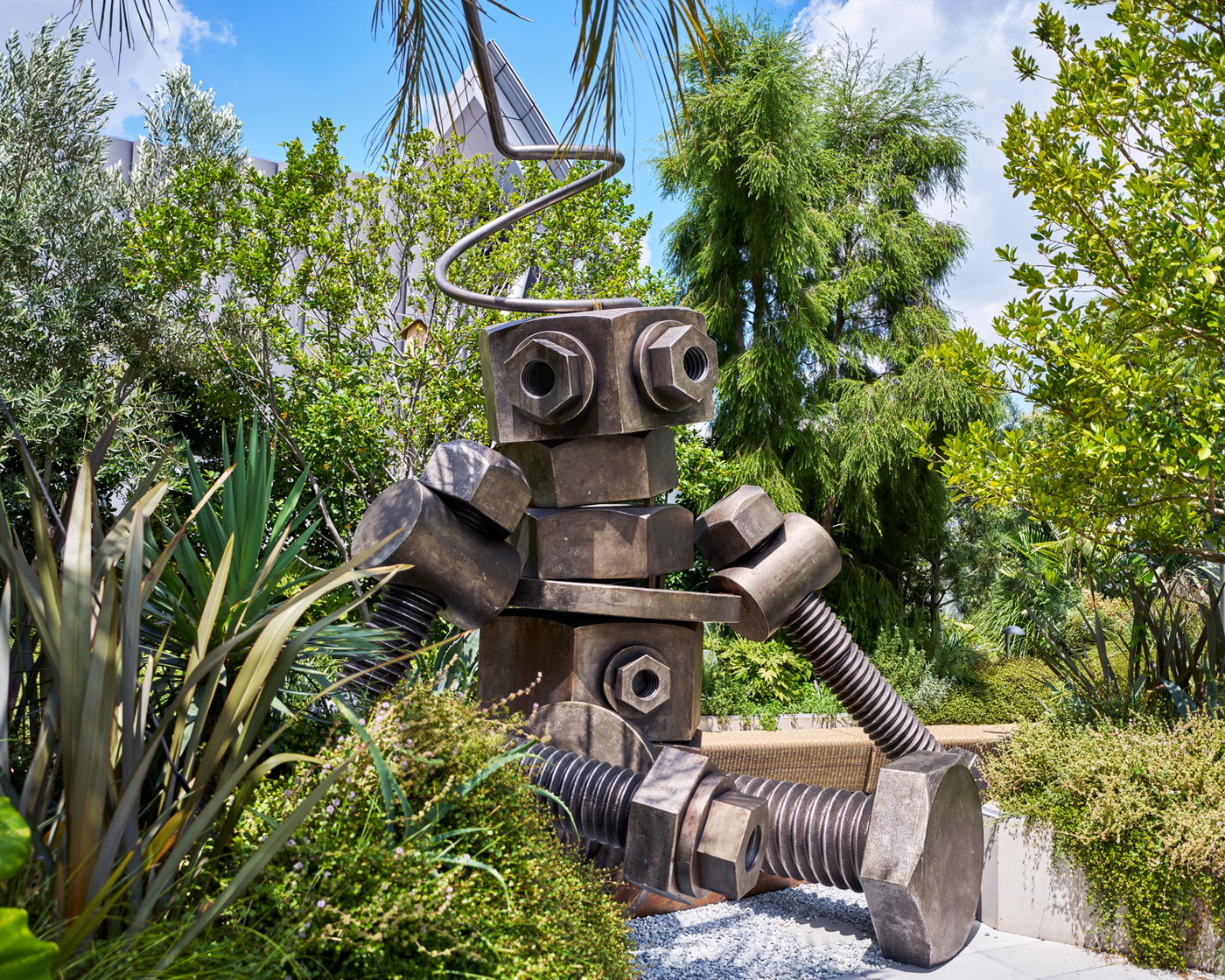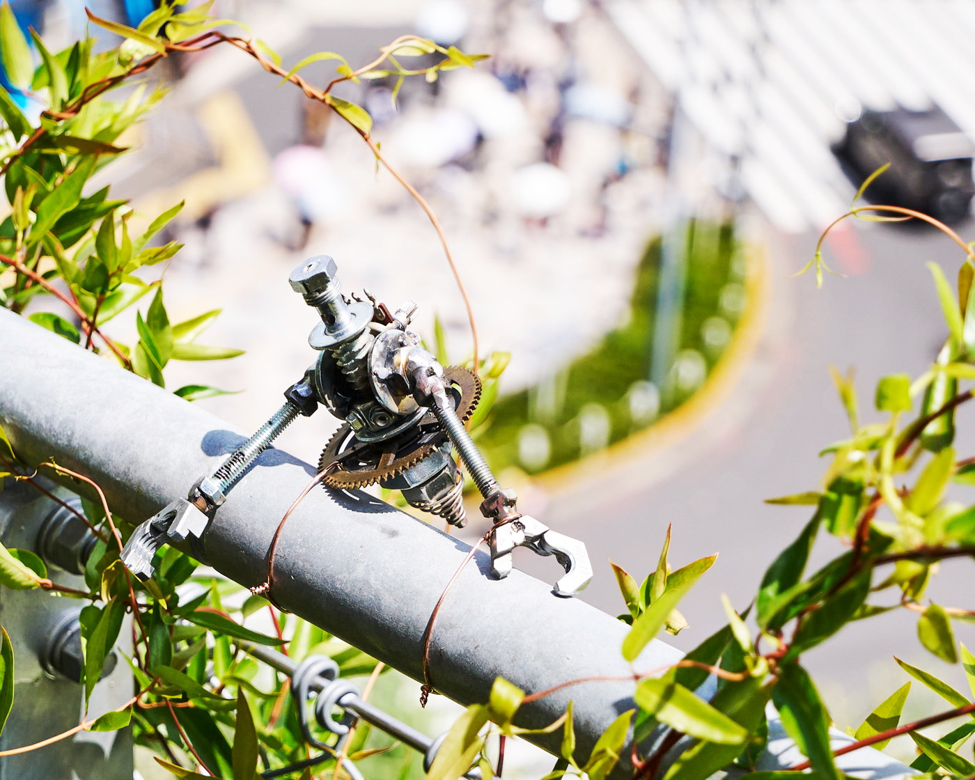 会場でスタッフから手渡される専用のiPadをハラカドの斜向かいにある東急プラザ表参道「オモカド」に向けると、そこには巨大ながらくたの塊が。
