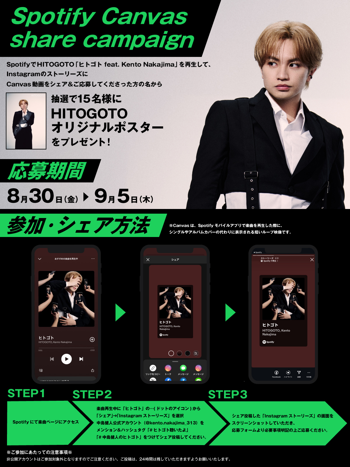これを記念してSpotify Canvasのシェアキャンペーンの実施が決定。参加した人のなかから抽選で15名にオリジナルポスターがプレゼントされる。詳細は、HITOGOTOのサイトで。