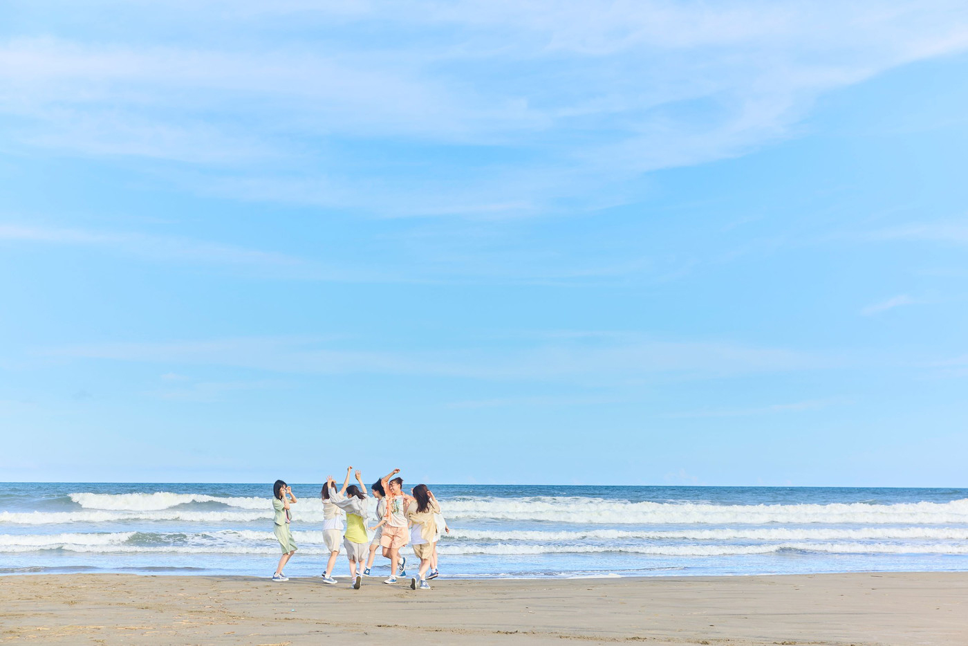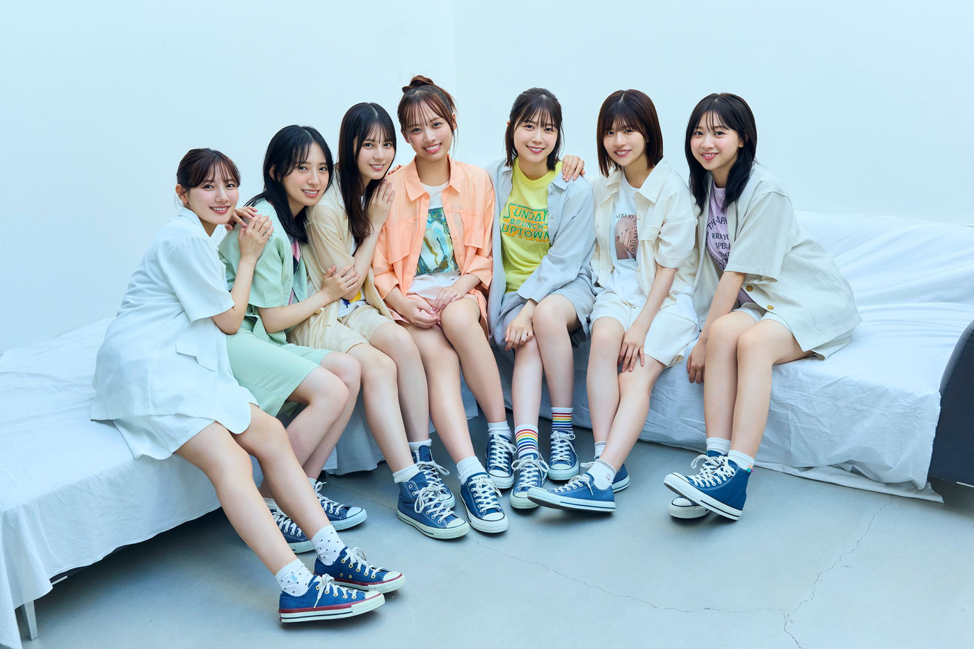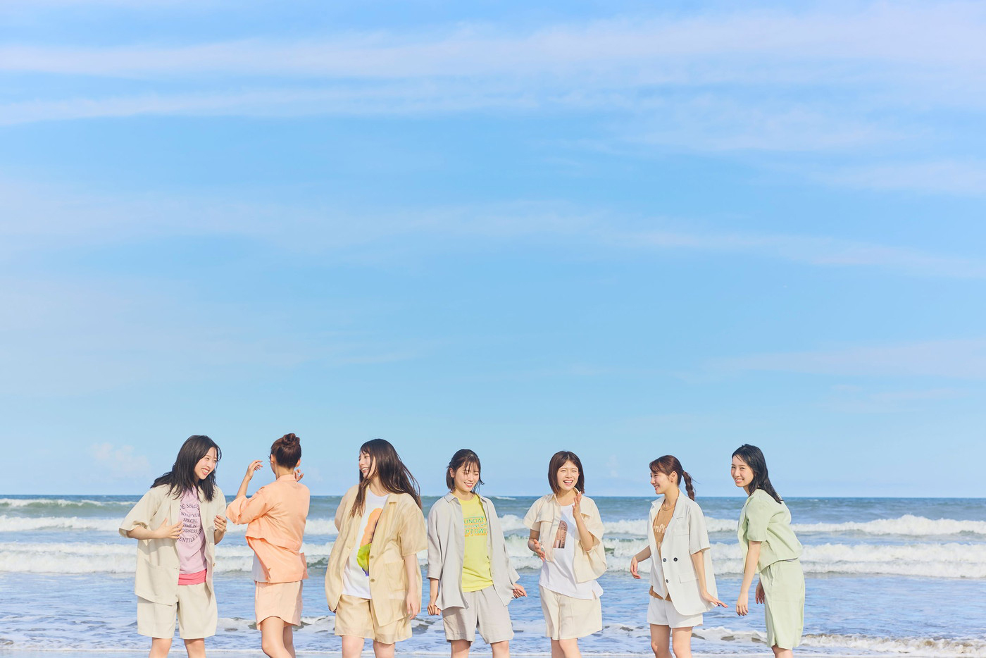 さらに、統一感のあるセットアップで夏の海に繰り出し、7人だけのかけがえのない時間を過ごす姿をエモーショナルに切り取ることで、このうえない「二期生の尊さ」を表現した。