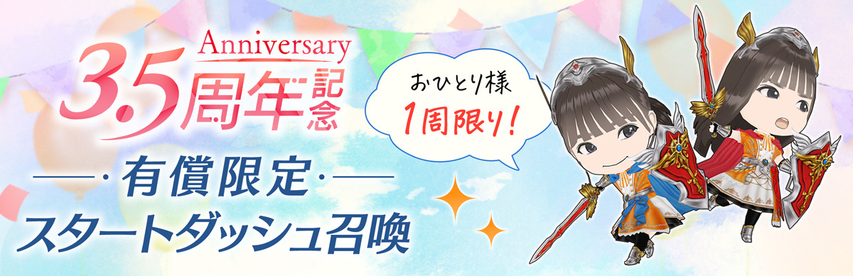 ■3.5周年記念「初回無料! 有償限定LVMax勇者(後編)確定スタートダッシュ召喚」開催!