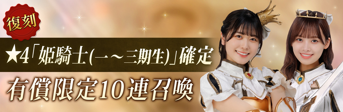 ★4「姫騎士(一~三期生)」、★4「姫騎士(四期生)」がふたつの召喚で登場。人気ジョブである姫騎士をゲットできるチャンス。