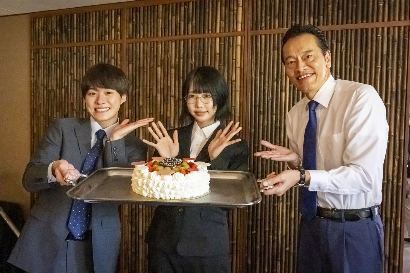 この日は、遠藤演じる武藤泰山の公設第一秘書・冴島優佳役のあのの誕生日ということで、遠藤と大橋がバースデーソングを歌いながらケーキを持ってサプライズ登場。クランクイン日からの予想外のサプライズに、「すごい…! 丸い! 僕、丸が好きなんです! ありがとうございます」と、あのらしい喜び方で現場はほっこり。そして、「今日から一致団結して頑張りましょう! よろしくお願いします!」と、『民王R』への決意もあらたにした。