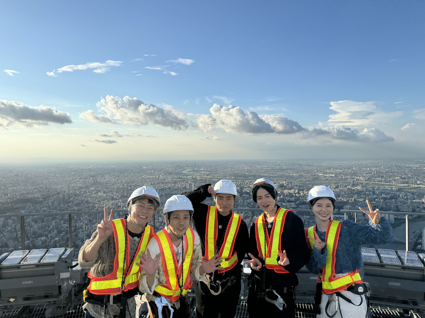 おなかをたっぷり満たしたあとは、いよいよ山田待望の東京スカイツリーへ。通常は高さ350メートルの天望デッキと、その100メートル上の天望回廊で景色が楽しめる東京スカイツリー。しかし今回は特別に、そこよりもさらに上、関係者もなかなか行くことができないという、超貴重な地上497メートル地点に潜入。窓のない屋外のため、ハーネスとヘルメットを着用し、いざ禁断のエリアへ。すると目の前には、誰も見たことがない景色が。「東京タワーがあそこに!」「やっぱり東京ってスゴい!」と、一同大興奮の絶景を大公開。