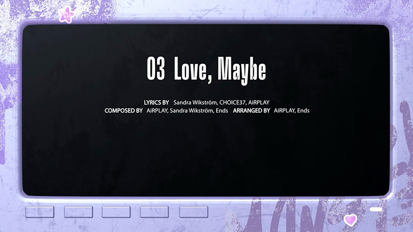 「Love,Maybe」は今回のアルバムのなかで唯一のスローな楽曲で、ヤン・ヒョンソク総括プロデューサーが「メンバーたちが解きほぐす美しいボーカルの実力が目立つ歌」と紹介し関心を集めた。