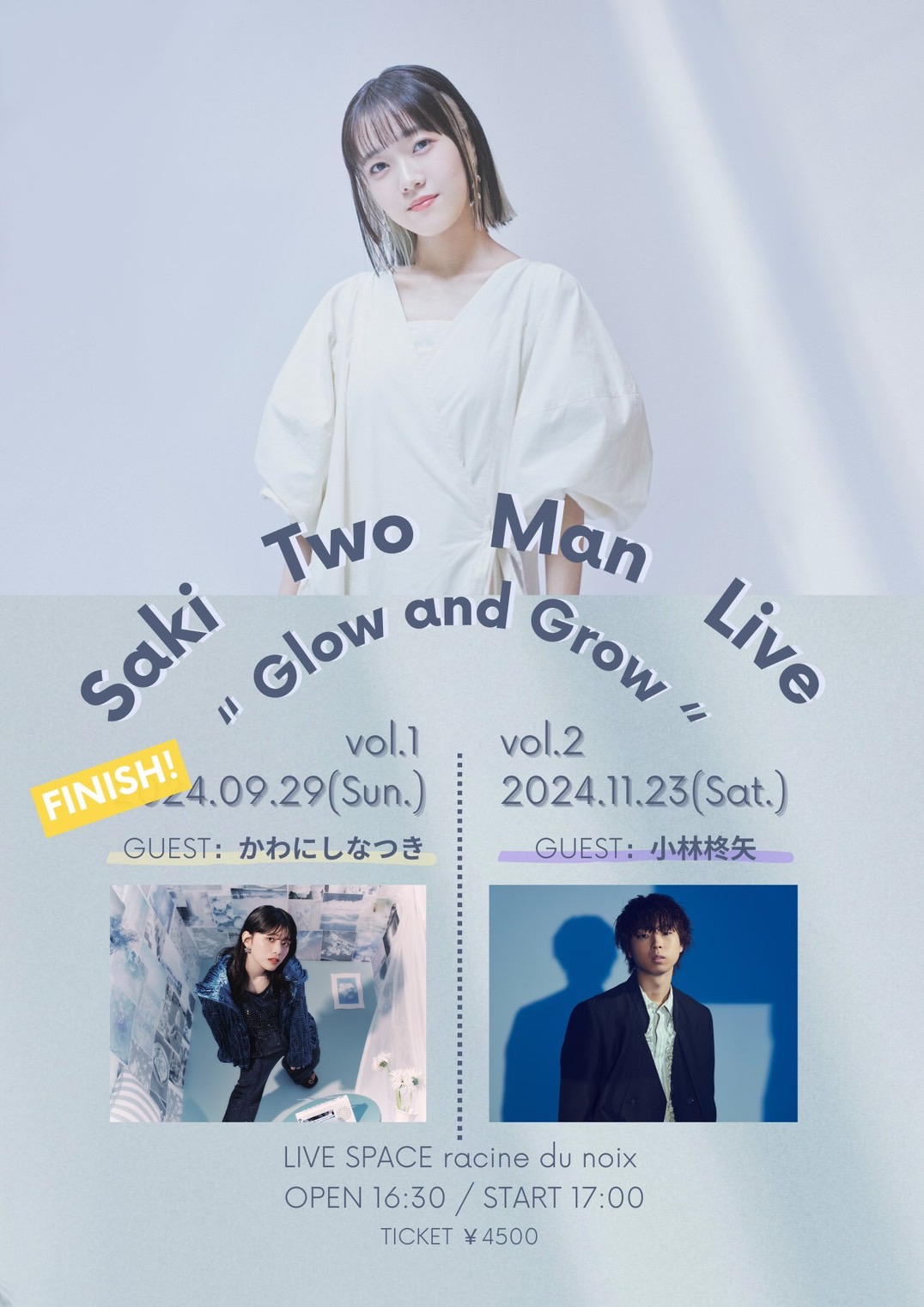 さらに11月23日には、ゲストに小林柊矢を迎えて『Saki Two Man Live vol.2 “Glow and Grow”』をLIVE SPACE racine du noixで開催する。チケットはイープラス先着先行受付中、詳細は申込みページまで。
