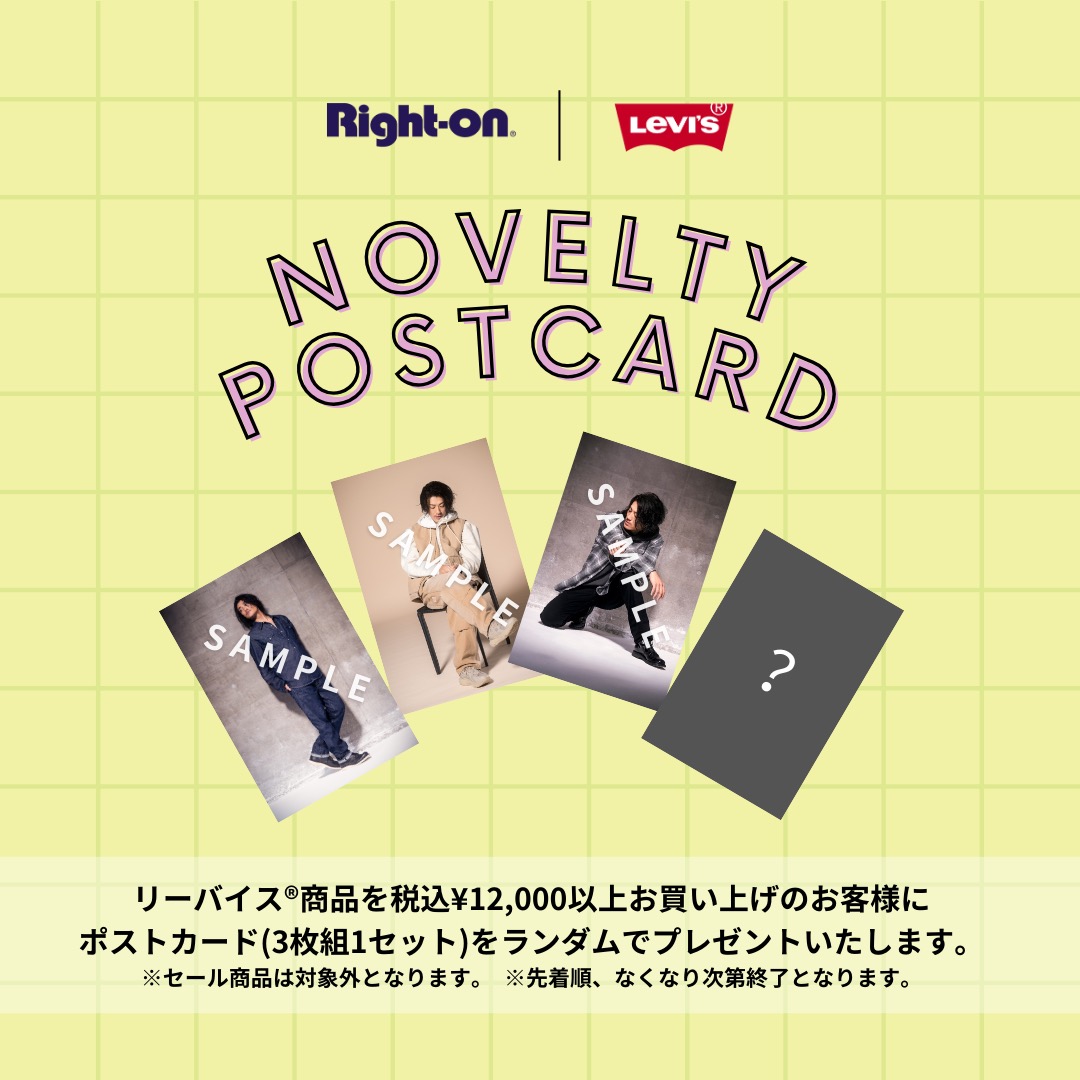 全国のライトオン店舗・ライトオン オンラインショップにて、リーバイス(R)の商品の1万2,000円(税込)以上の購入者を対象に、ノベルティポストカード(3枚組1セット)を配布。ポストカードは複数種類用意され、ランダムに配布される。(※セール商品は対象外)