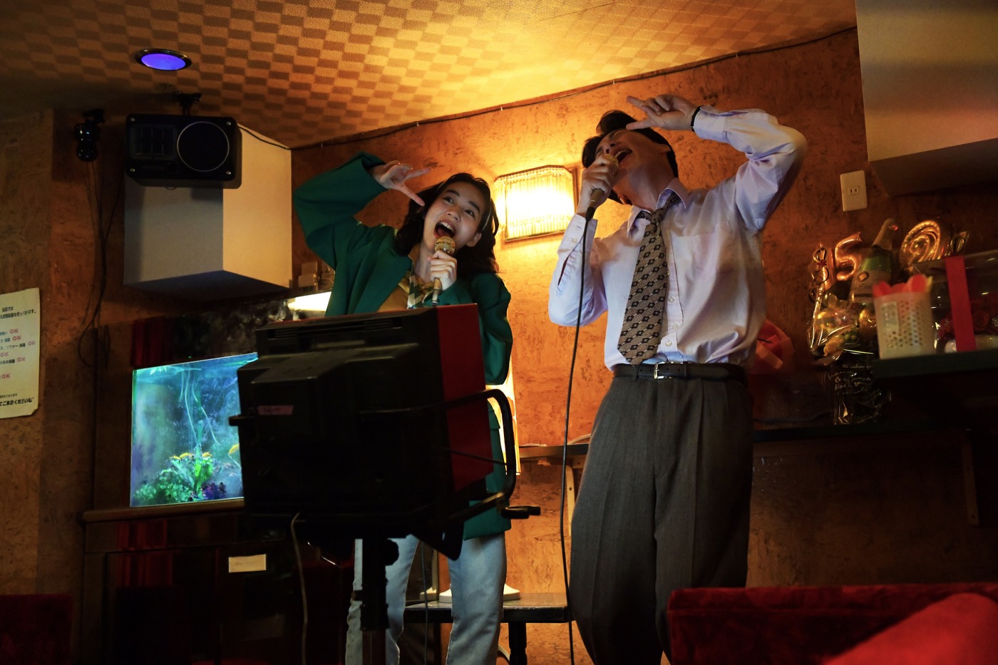 今回解禁された場面写真では、加代子(のん)が因縁の相手・東十条(滝藤賢一)にヘッドロックをするシーンや、加代子の大学の先輩であり担当編集者でもある遠藤道雄(田中圭)のネクタイを掴み、怒りを露わにし、一触即発のシーンが…。さらに、楽しそうに遠藤とカラオケをしたり、東十条と見つめ合いながらダンスをするシーンなどまさに加代子のキャラクターを体現した様々なシーンが明らかとなった。