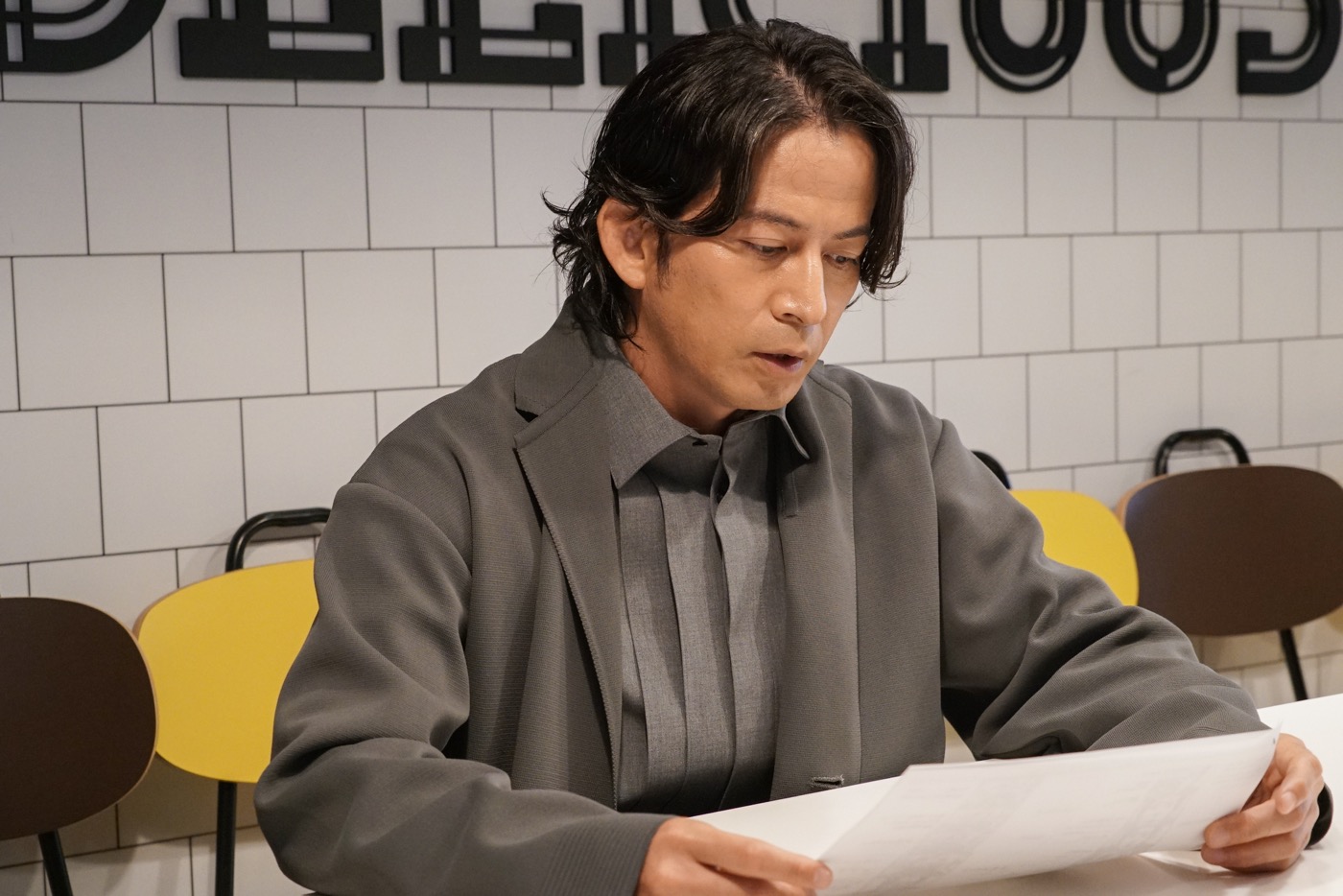 岡田の出演シーンが続く「1カット撮影」の本番を控え、現場では入念なリハーサルが繰り返された。長いセリフを60秒ジャストで話し終えるなど高難度の演技を担当する岡田はもちろん、前後に移動しながら撮影を行うカメラマンや音声スタッフ、背景となる客席でピタリと動きを止めている大勢のエキストラなど、全員が緊張感をもって臨んでいることを感じ取った岡田は「すごいチャレンジだな…これは」とポツリ。全体の流れを確認するように行われた1回目のテストでは、わずかに3秒オーバーしたものの、感情のこもった岡田の演技に大きな拍手が贈られた。