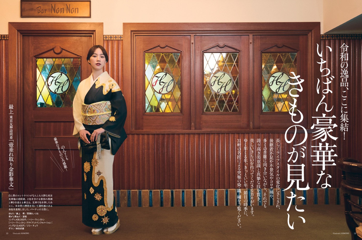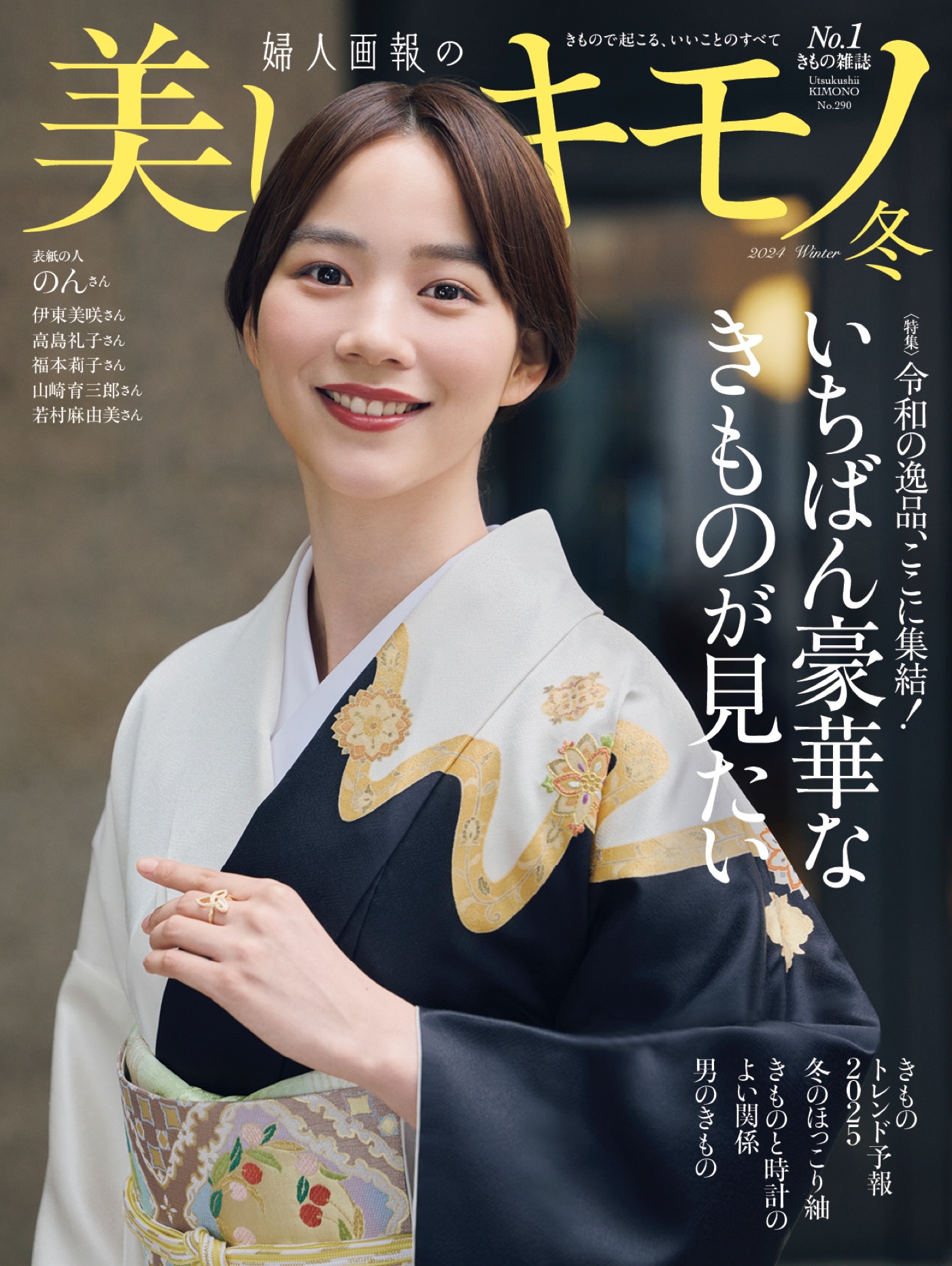 のんは、白と黒のコントラストが大胆な東京友禅染の訪問着で通常版の表紙を飾る。また、山崎育三郎は同時発売の増刊「山崎育三郎特別版」の表紙を務める他、男のきもの特集でさまざまなタイプのきものを着こなす。