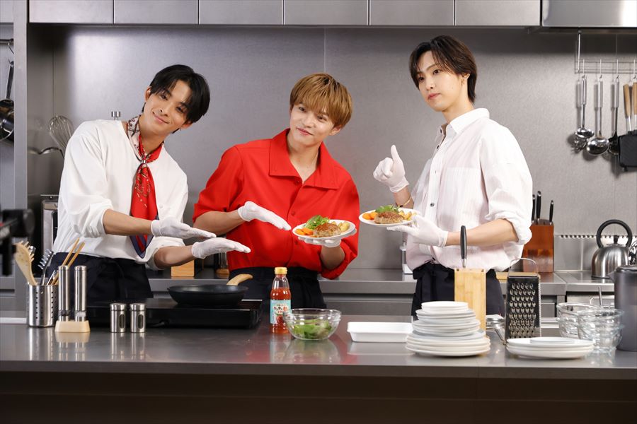 今回のムービーでは、ミツカンの人気商品“カンタン酢”をTHE RAMPAGE(RIKU、神谷健太、長谷川慎)、8月に新発売した“カンタン酢 トマト”をFANTASTICS(佐藤大樹、澤本夏輝、堀夏喜)が担当。前半ではMVさながらスタイリッシュでかっこいい姿を、後半では一生懸命料理に挑戦する素の姿を観ることができる内容となっている。