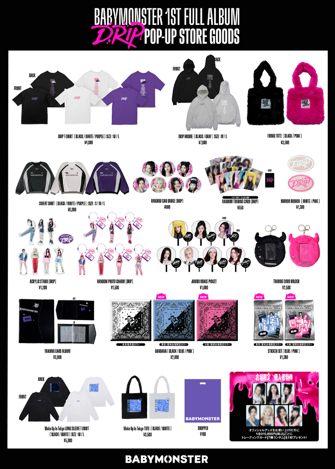 さらに同時開催として、東京・大阪・愛知・福岡で『BABYMONSTER 1st FULL ALBUM [DRIP] POP-UP STORE』を展開。