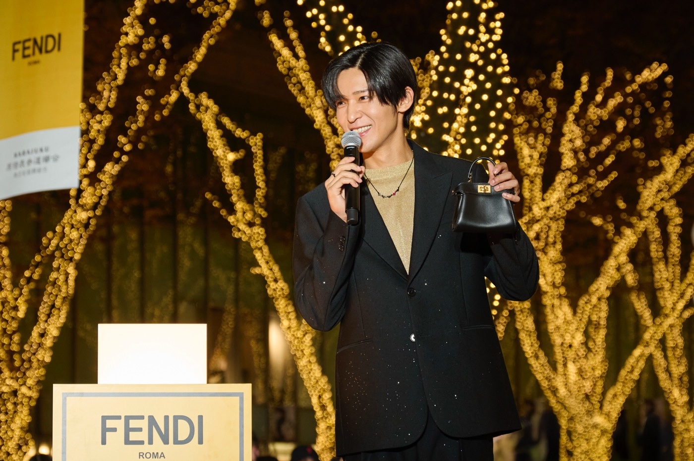 点灯式後にはフェンディ表参道店を訪れ、「フェンディ 2024年 ウィンターホリデーコレクション」の特製クリスマスツリーや、ホリデーシーズンを彩る新作のアイテムの数々を堪能。さらに、12月26日まで期間限定で設置された特別なホリデーフォトパネルで記念撮影を楽しむなど、特別なひとときを過ごしていた。