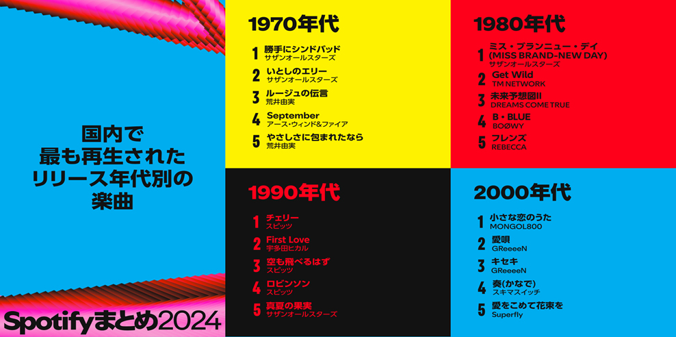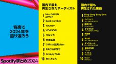PREV NEXT 2024.12.05 Spotify年間ランキング発表!Creepy Nuts「Bling-Bang-Bang-Born」が日本&海外で最も再生された国内アーティスト楽曲に - 画像一覧(5/7) 前へ 記事に戻る 次へ