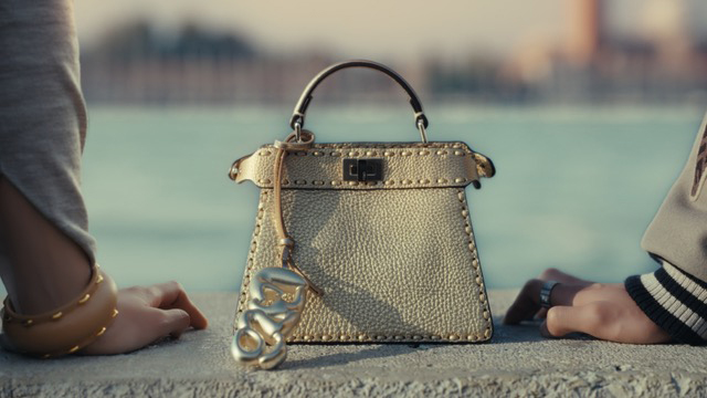物語の幕開けは川口春奈と目黒蓮のもとに届いたフェンディからのインビテーションが、彼らを水上の迷宮都市・ヴェネチアへと導くシーンから始まり、ヴェネチアに降り立ったふたりは、目的地を目指す。そして、迷宮のように入り組んだ街中で川口春奈がゴンドラに置き忘れてしまったゴールドの“ピーカブー プチ(Peekaboo Petite)”を巡るすれ違いの物語が展開される。