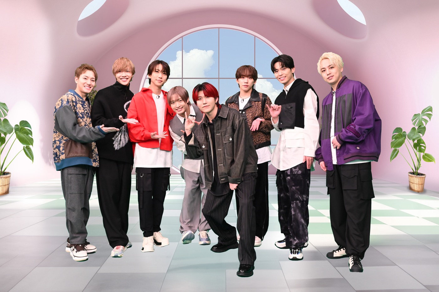 チーム対抗戦となる「エンジョイダンスバトル」では、佐藤、椿泰我、基俊介の<ハピネスチーム>と、影山拓也、鈴木大河、松井奏、横原悠毅の<エンジョイパワフルチーム>に分かれ、DJ若井が選んだ楽曲にのせて即興ダンス対決。基、横原の“最年長対決”で始まったダンスバトル、果たして勝利するのはどちらのチームか!?