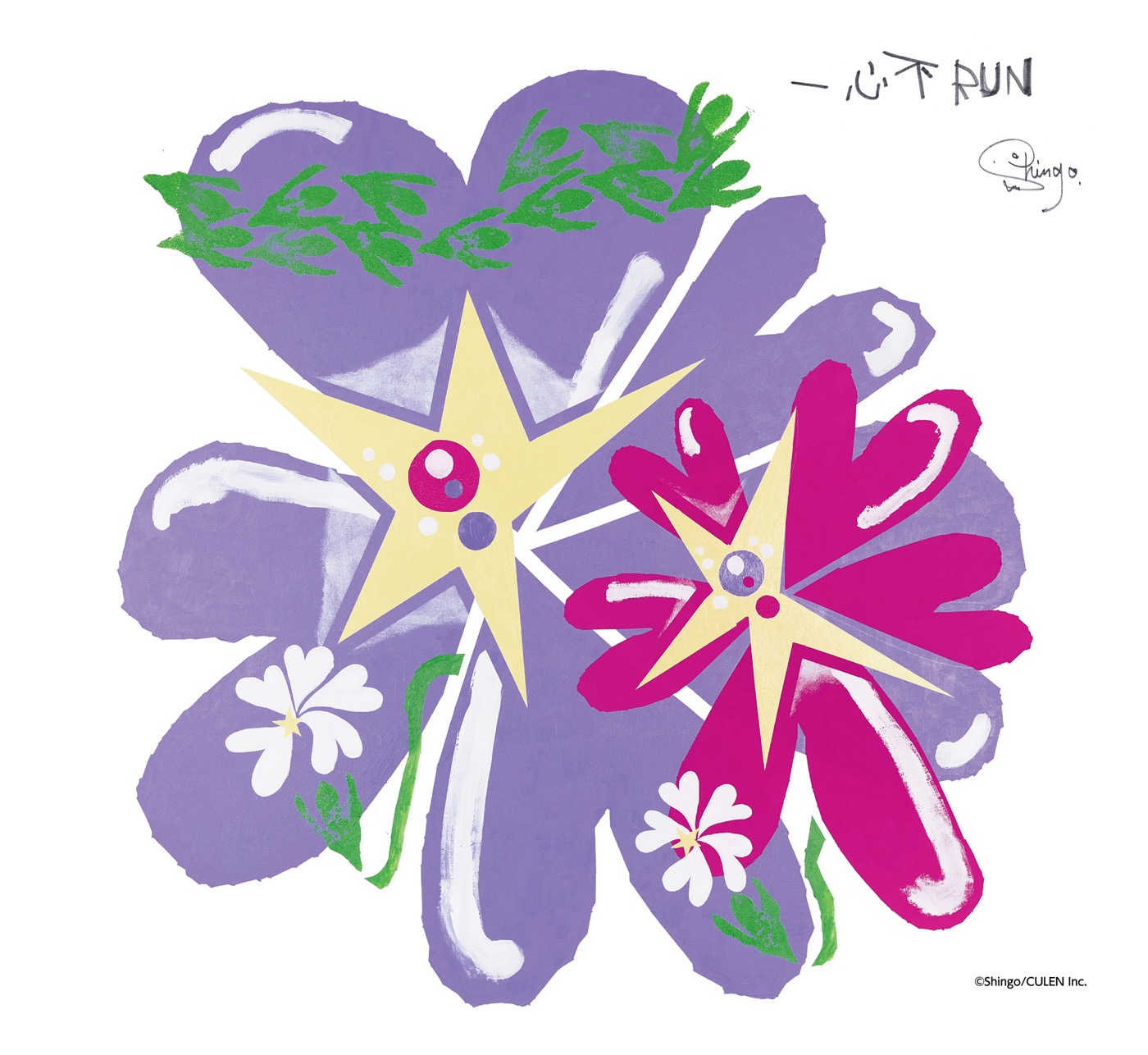 『一心不RUN』と名付けられたこの作品は、サクラソウをモチーフに描かれた。“大阪府の花”に認定されているサクラソウは、寒さに強いことでも知られている。このビジュアルが、真冬の大阪の街で繰り広げられる『大阪国際女子マラソン』を華やかに彩る。