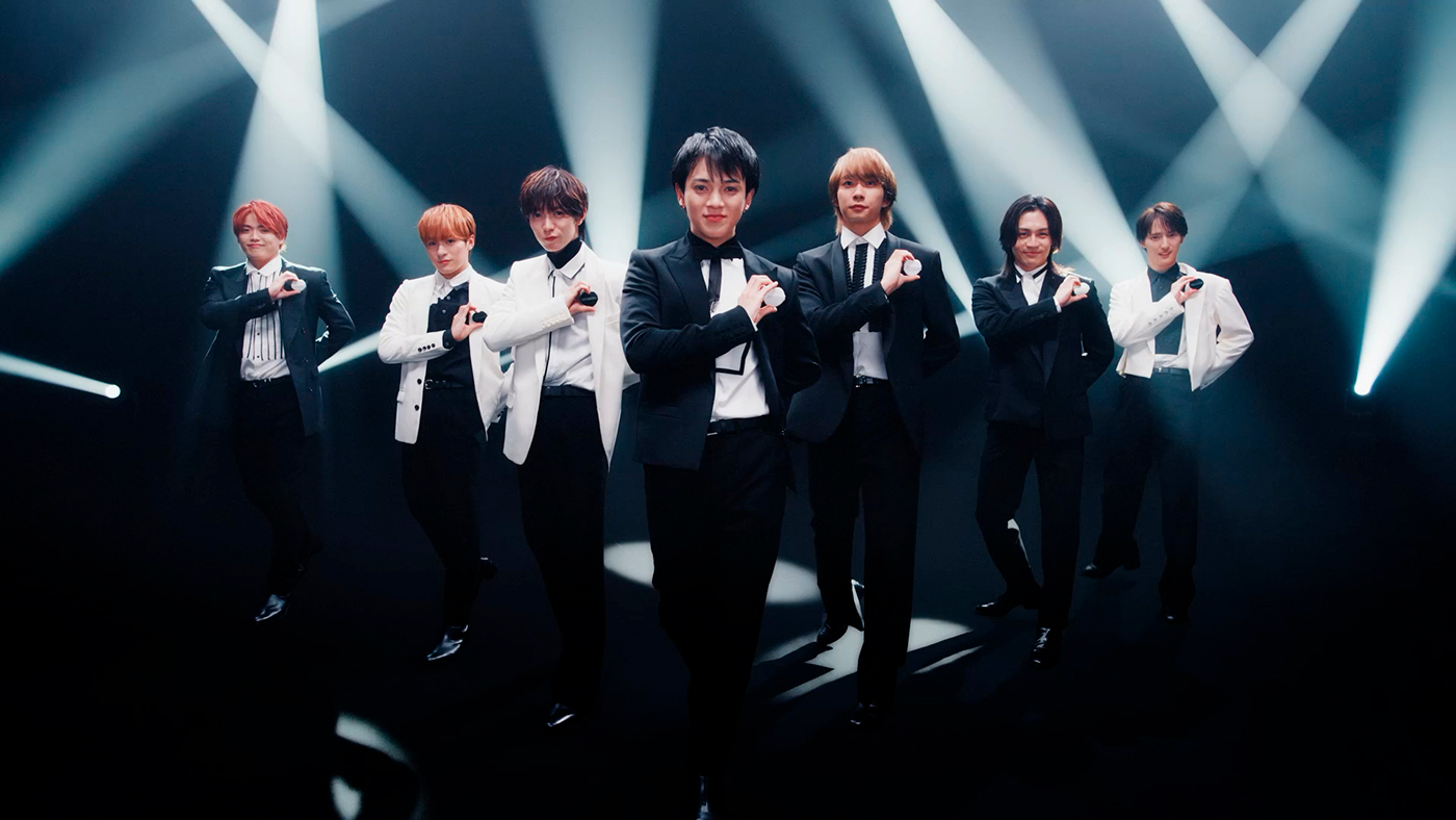 新CMでは、1月15日からリニューアル新発売となるエアレスクッションファンデの白と黒のパッケージの世界観のなか、Travis Japanがモノトーンカラーの大人びた装いで登場。