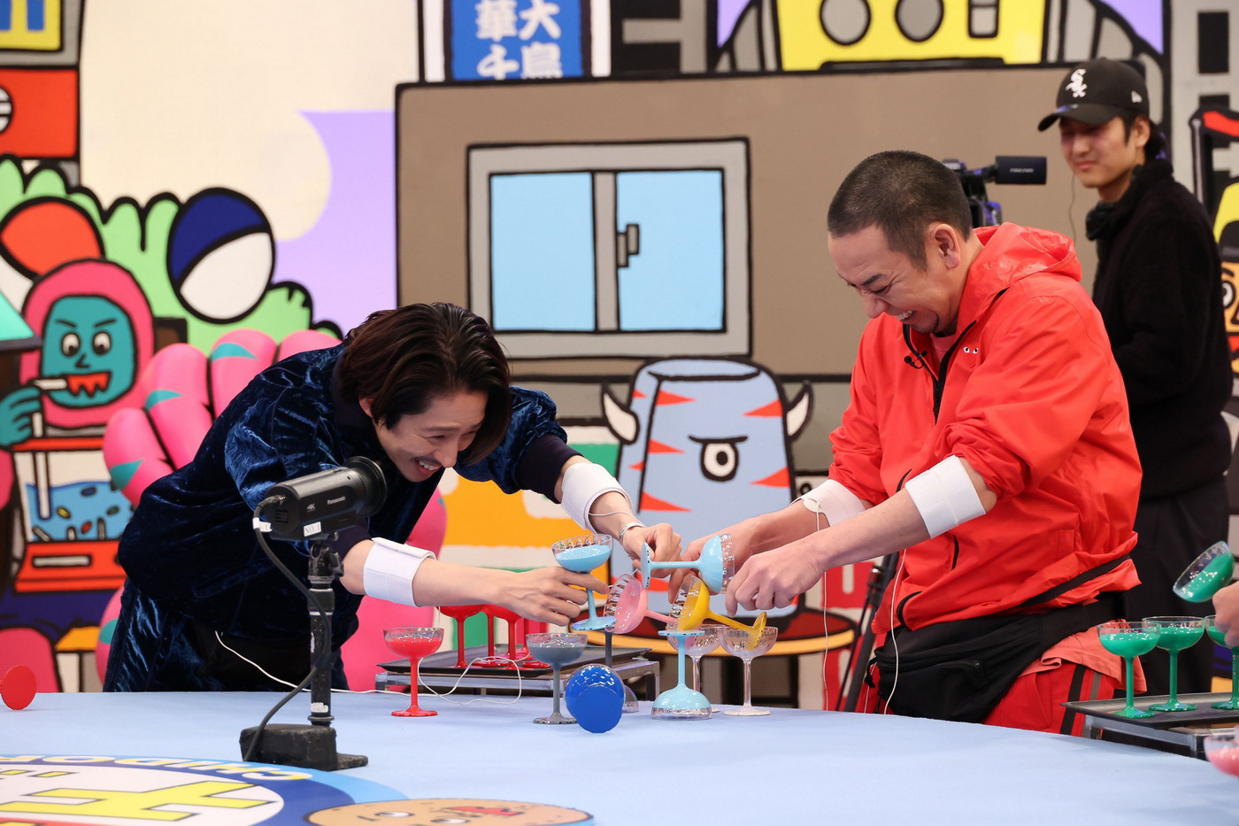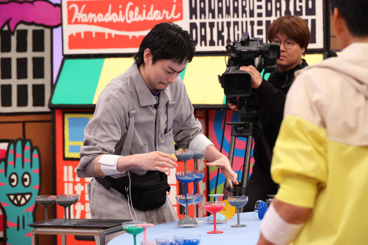 三宅:もちろん少しの痛みはありますけど、そんなに耐えられないほどではなくて、どちらかというと1つ目のゲームの“ビリビリシャンパンタワー”の方がヤバかった。だから、菅田くんがあのビリビリの中で腕を曲げたままちゃんとグラスを置いていたのが本当にすごいと思いました。僕はもう腕が反り返っちゃって、(腕が)伸びたままやろうとしたから全然ダメだったんですけど。