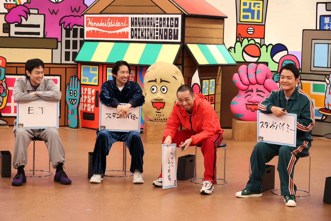 最後の「7人で答えを合わせましょう」では、“顔を出さないアーティストといえば?”というお題で、話し合ってはいけないというルールにも関わらず「何組もいますよね」「どっちなの?」など、それぞれ好き勝手にしゃべり出し、濱家が厳重注意。さらに三宅がお題を選択する場面になると、前代未聞の大失敗をしでかし、全員から総ツッコミを受ける。