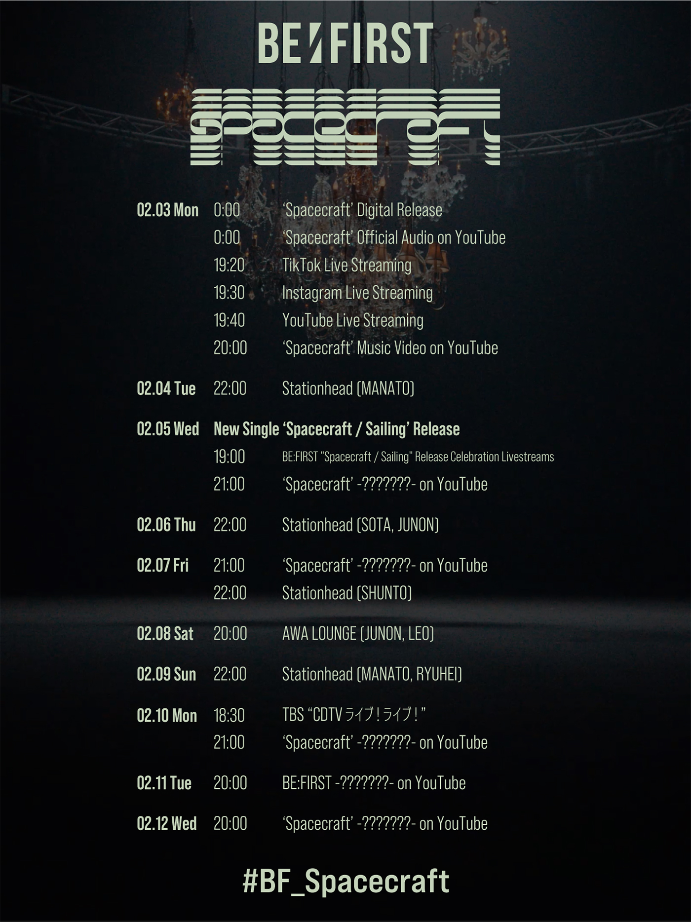 「Spacecraft」はBE:FIRSTの真骨頂ともいえるダンスナンバーで、現在開催中の『BE:FIRST DOME TOUR 2024-2025 “2:BE”』の最終公演となる大阪・京セラドーム大阪公演の直後となる2月3日0時から先行配信が開始。同日20時からMVがYouTubeにてプレミア公開される。コレオグラフは、メンバーのSOTAが手掛けた。