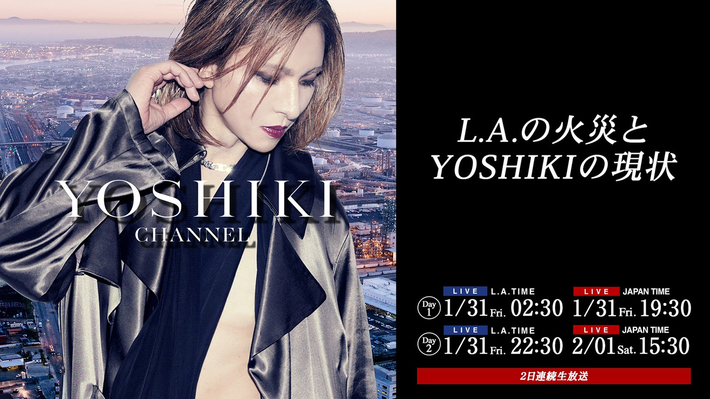 米・ロサンゼルスの山火事発生から約3週間。YOSHIKIが現地ロサンゼルスから、ニコニコチャンネル(日本)およびYouTube Channelメンバーシップ(日本含む全世界)で配信されるYOSHIKI CHANNELに2日連続で生出演(Day1は音声のみ)する。