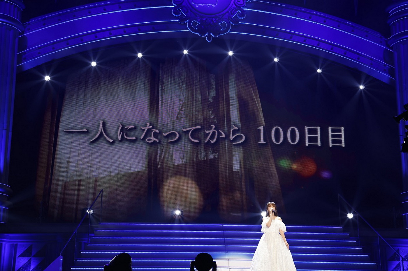 与田のこれまでを振り返るVTRでは、彼女が敬愛する1期生・西野七瀬がナレーションを担当。西野の「おつかれさま、祐希!」というメッセージに続いて、純白のドレスを身にまとった与田がステージに登場。