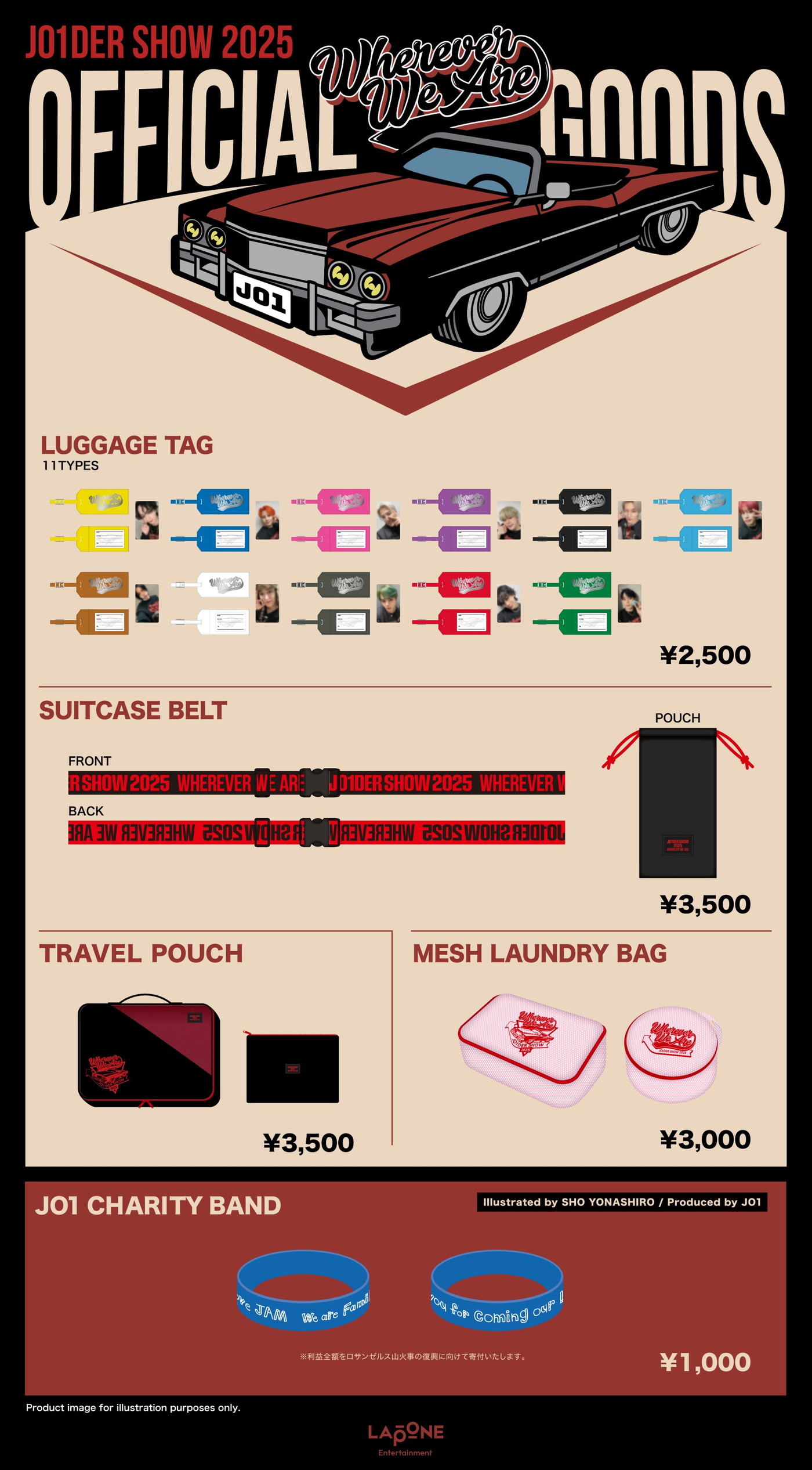 また、現在開催中のワールドツアー『JO1 WORLD TOUR JO1DER SHOW 2025 ‘WHEREVER WE ARE’』で発売されているライブオフィシャルグッズの受注販売が決定した。さらに、この受注販売を機に、アメリカ・ロサンゼルスで1月に発生した山火事の復興支援のためのチャリティグッズをJO1がプロデュース。リーダーの與那城奨がデザインしたチャリティバンドの利益は、ロサンゼルス山火事の復興に向けて全額寄付される。