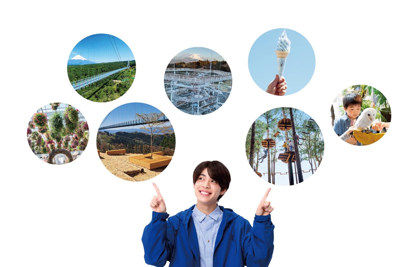 今回のイベントでは『絶景と発散。聡選挙』と称して、三島スカイウォークの絶景と発散の12の体験の中から人気投票を実施。投票すると、三島スカイウォークをはじめ、伊豆・箱根・御殿場などの富士山周辺の宿泊・食事施設、特産品などが当たる抽選に参加できる。