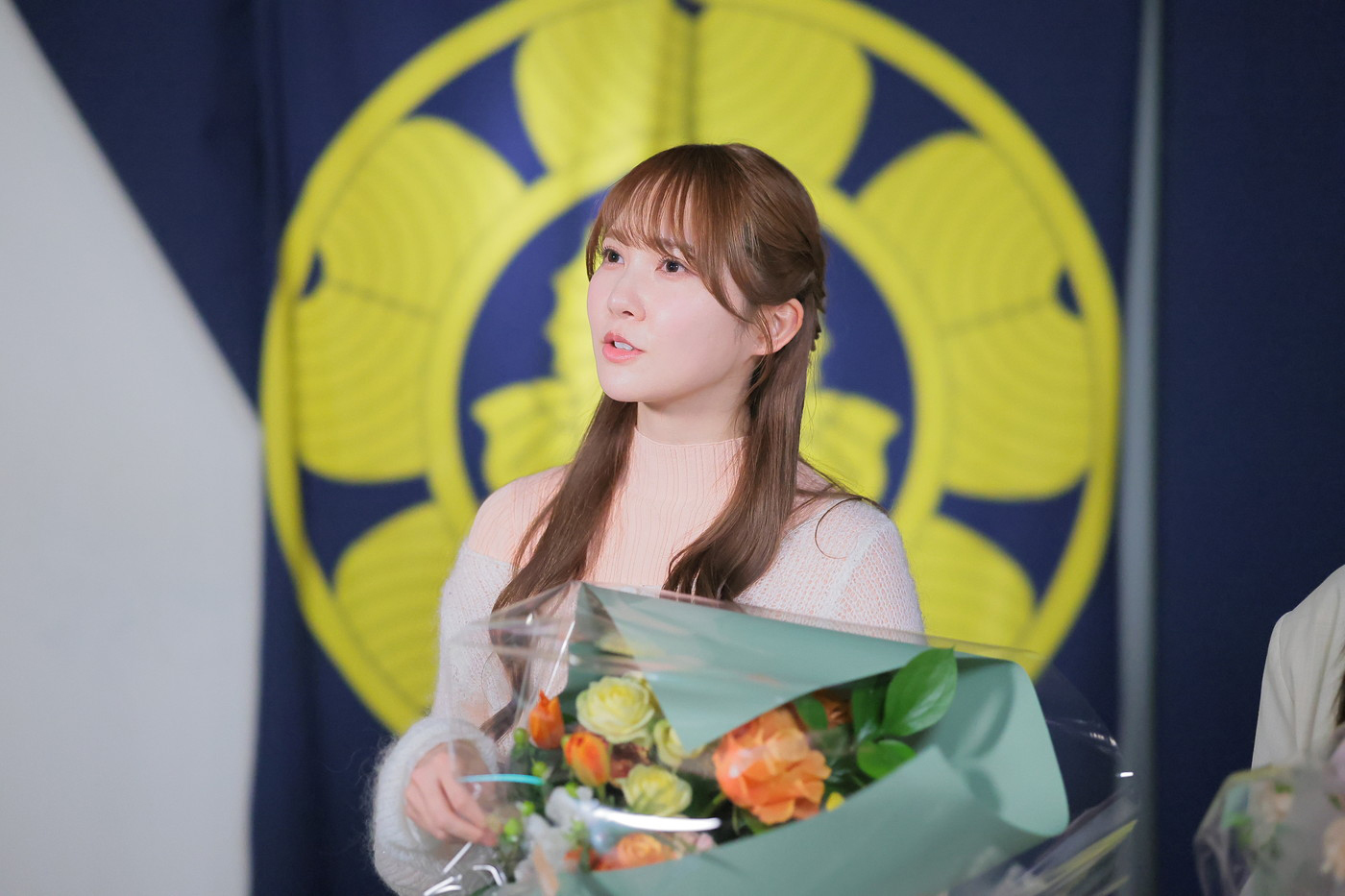 皆さん、お疲れ様でした!この作品は、撮影期間が1週間くらい空いても、また戻ってきたときに仲良くできるというのは素敵な空間だと思いますし、すごく演技もしやすかったです。サポートしてくださり、ありがとうございました。朝比なりのあざとさを演じることができたと思います!