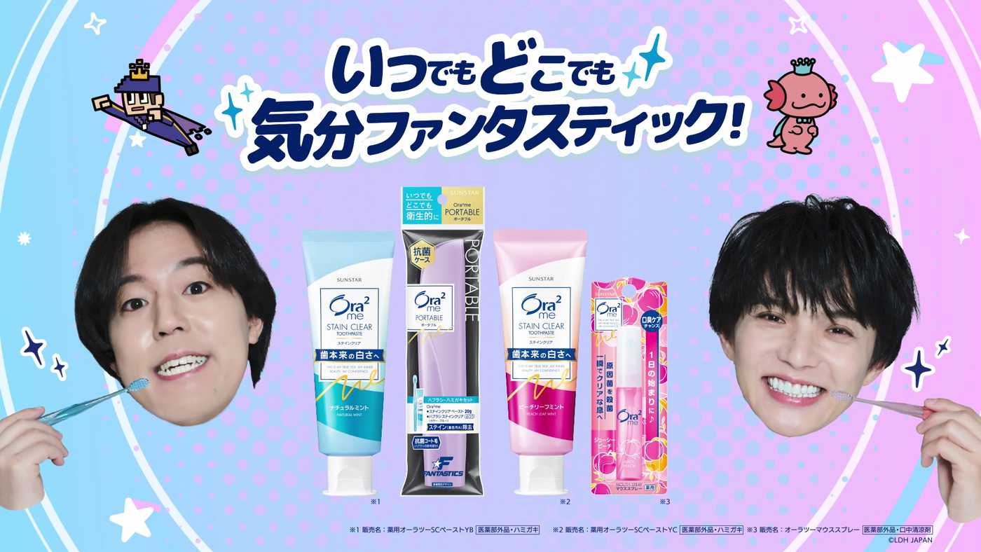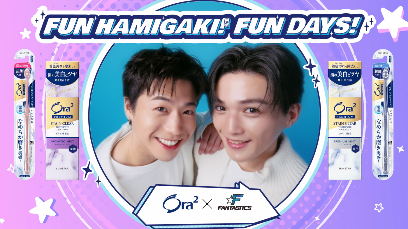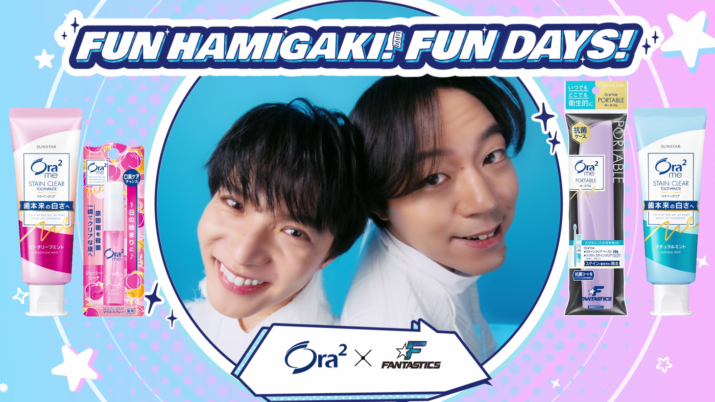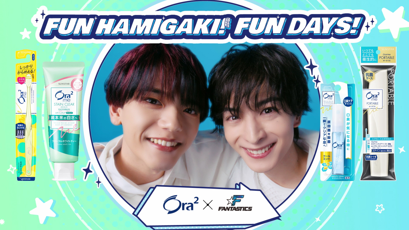 サンスターグループのオーラルビューティーケアブランド「Ora2(オーラツー)」(「2」は、二乗が正式表記。以下オーラツー)は、FANTASTICSを期間限定のアンバサダーに起用し、3月21日から新WEBCM「FUN HAMIGAKI! FUN DAYS!」を公開。