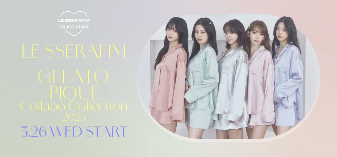 LE SSERAFIMと、ルームウェアブランド「gelato pique(ジェラート ピケ)」のコラボレーションアイテムの特設サイトが、3月21日12時に、ジェラート ピケ 公式オンラインストア、マッシュグループ公式アプリ「MASH STORE」、ECデパートメントストア「USAGI ONLINE」にて公開されることが発表となった。