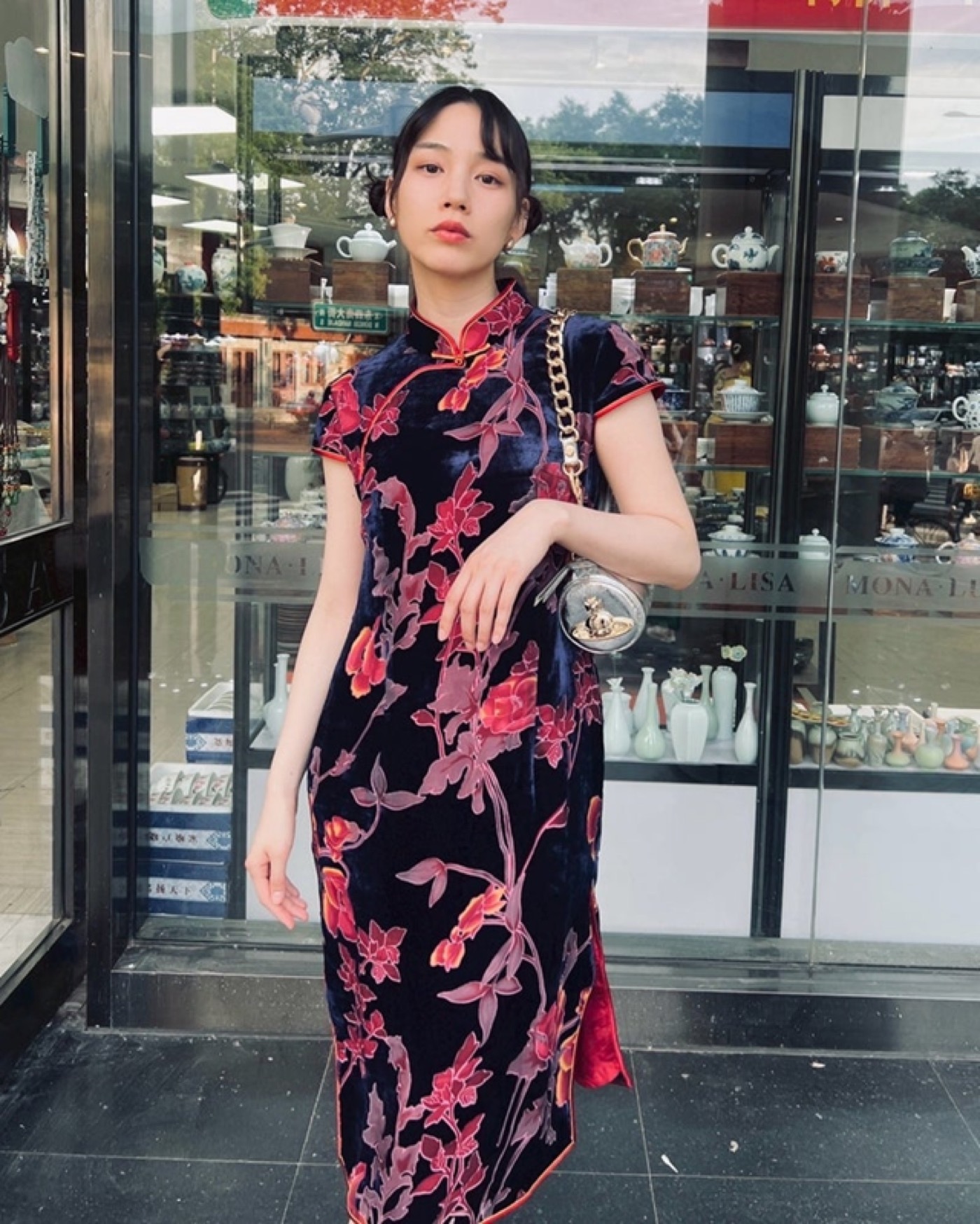 「お団子ヘアとチャイナドレスがめっちゃキュート」