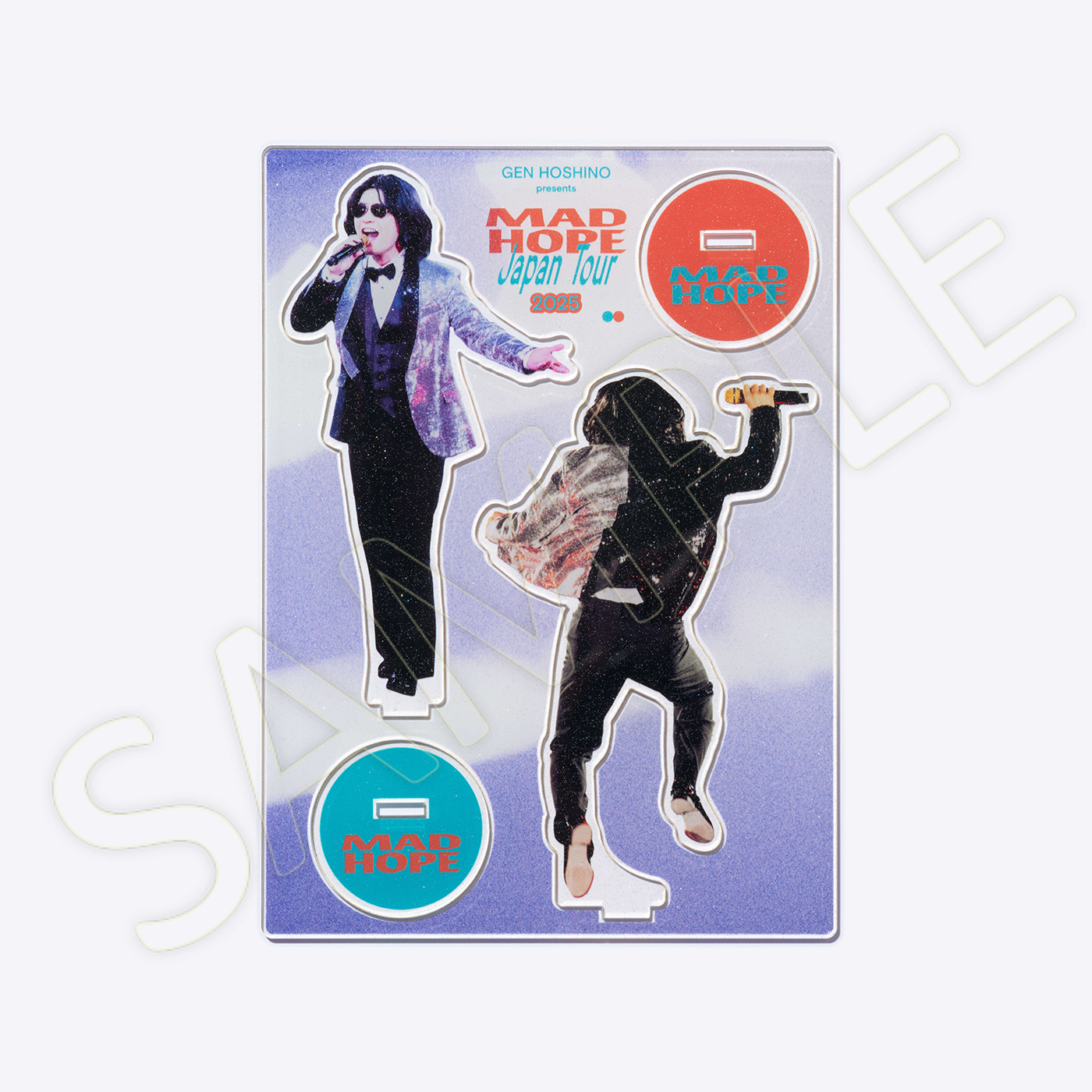 「ニセ明のアクリルスタンド “MAD HOPE”」は、2024年、星野のメンバーシップサイト『YELLOW MAGAZINE+』の会員限定グッズとして即日完売した人気アイテムの新バージョン。ラメ加工が施され、ニセ明の煌びやかなライブパフォーマンスの一瞬を切り取った、本ツアー仕様の“MAD HOPE”なデザインに仕上がっている。