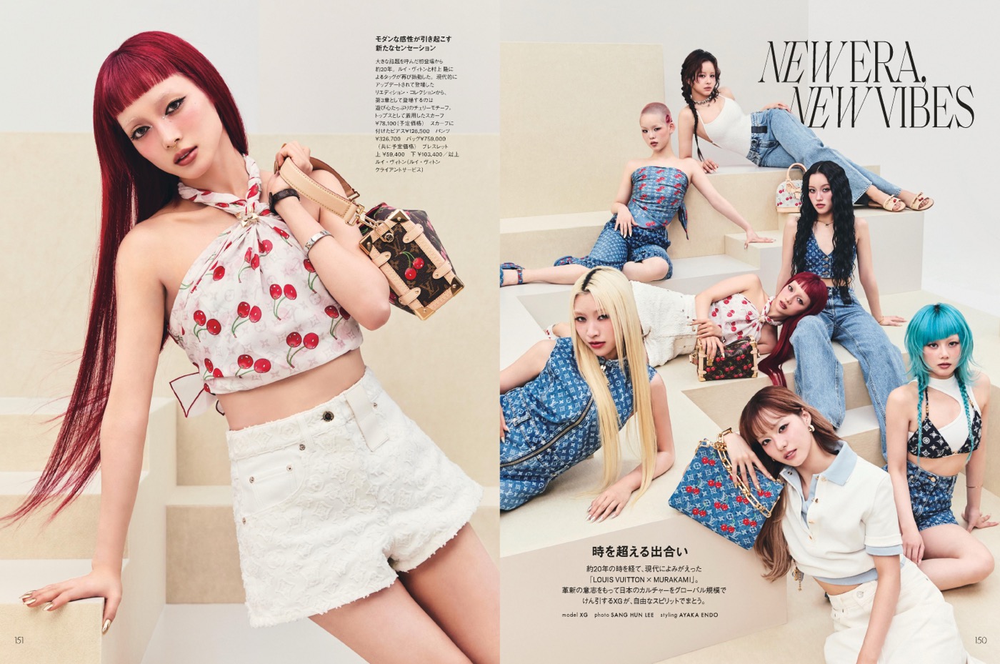 中面では「ルイ・ヴィトン」のモノグラム柄と「LOUIS VUITTON × MURAKAMI」コレクションのチェリーモチーフを基調にした、クラシック&ポップなXGらしいスタイリングを全8ページで紹介する。
