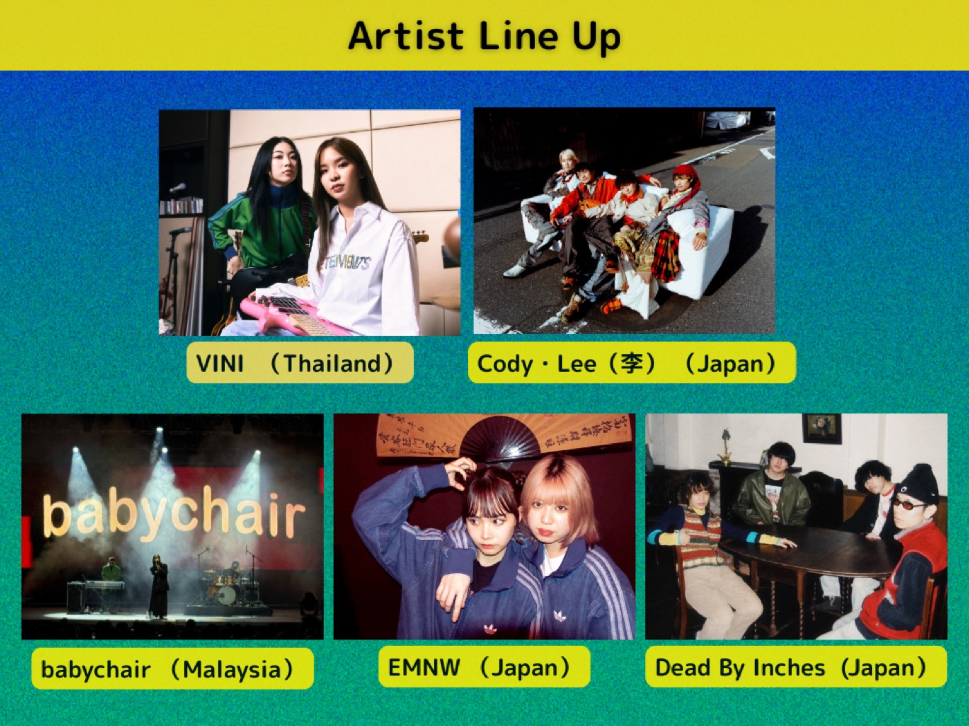 さらに国内からは、海外でのライブ活動 も本格化しているCody・Lee(李)、台湾での初ライブを成功させたEMNW、タイのフェス出演をきっかけでアジア圏での知名度上昇中のDead By Inchesも参加する。