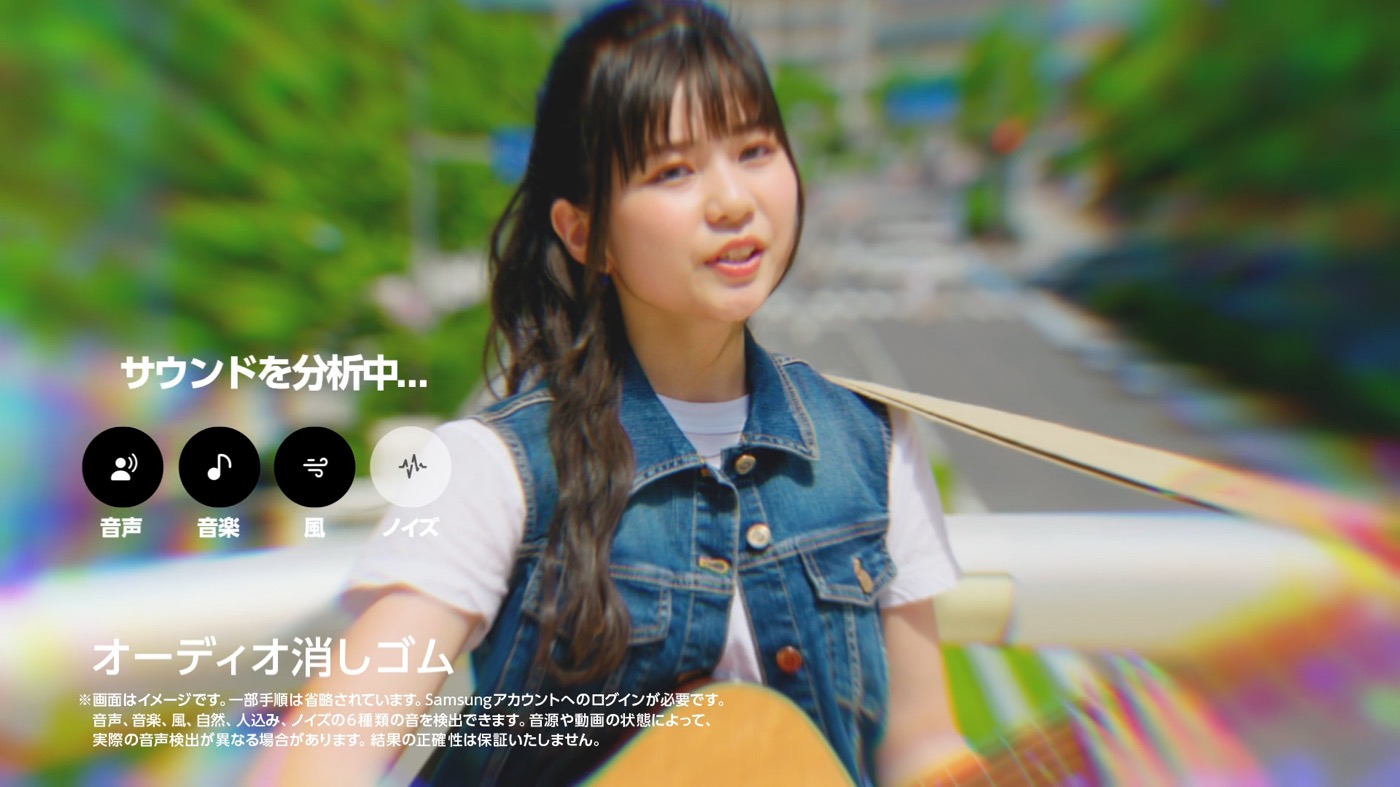 ところが、周囲の音で自分の歌声がかき消され残念な仕上がりに。そこで“Samsung Galaxy S25 Ultra”の最新AI機能であるGalaxy AIのオーディオ消しゴム機能を使用し、不要なノイズだけを除去すると、自分の歌声がきれいに聞こえる動画に。「(邪魔な音が)消えた!」と歓喜し、早速SNSに投稿すると、どんどん拡散され、たくさんのいいねが付いた。喜びの表情を噛み締め、夢に一歩近づく等身大の女性の姿を描いている。