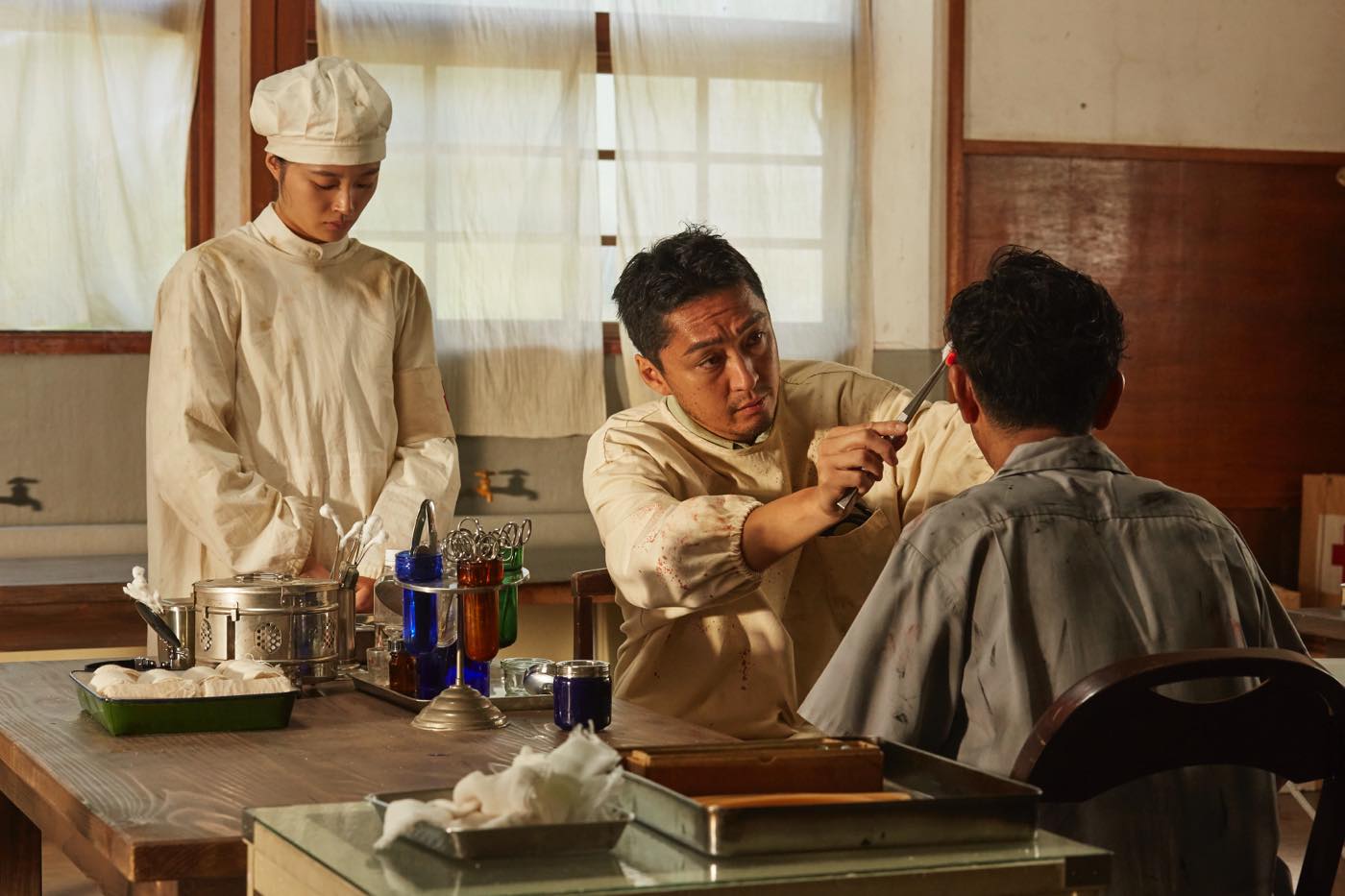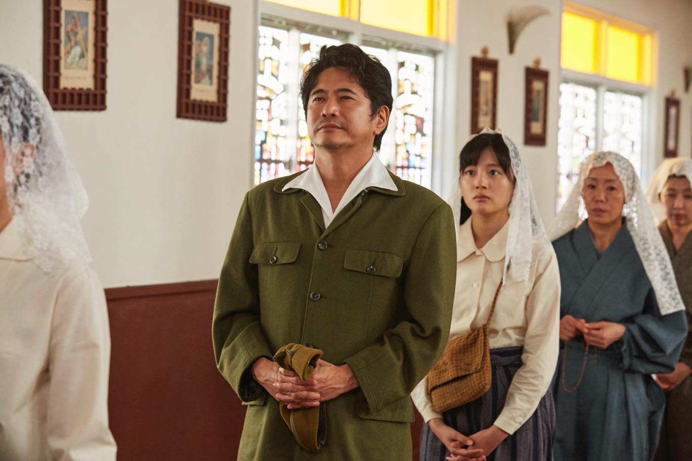 今回解禁となった場面写真は、原爆投下前から投下後の救護活動まで、激動の日々を切り取ったもの。クリスチャンのミサヲと父の信行(萩原聖人)が浦上天主堂へ告解に行く場面や、一面焼け野原となった高台で、時が止まったままの壁時計に目を奪われるスミの姿、アツ子が看護婦長のトキ子(水崎綾女)とともに迫る戦闘機に警戒する様子などが収められている。さらに、のちにスミが運命的な出会いを果たすことになる、孤児院で子どもたちの世話をする令子(南果歩)のシーンも含まれている。
