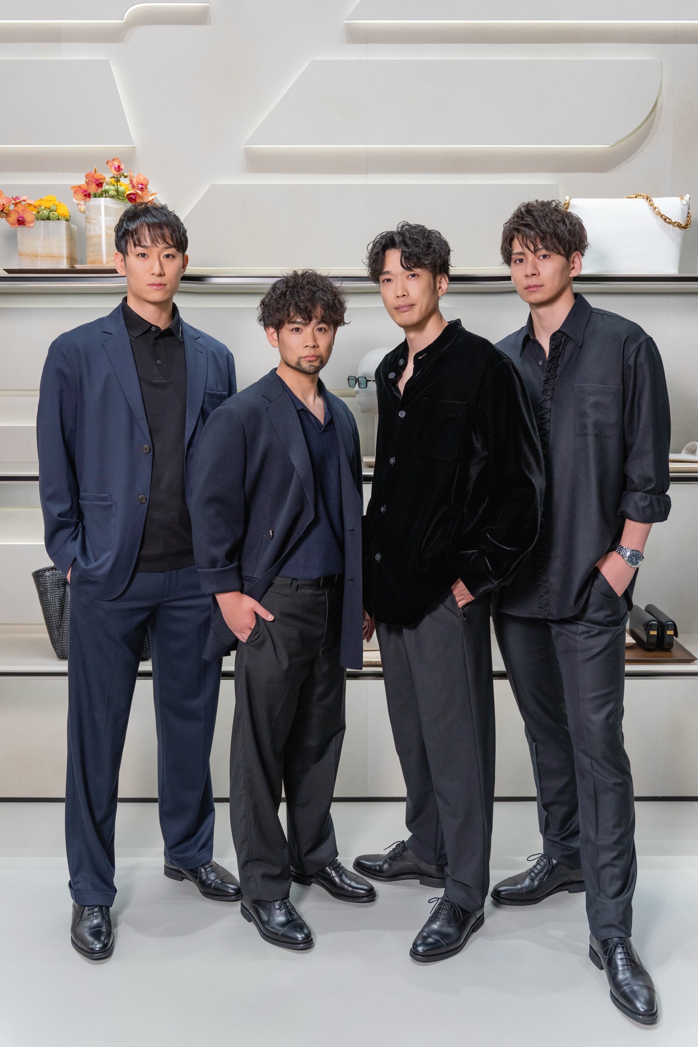 INIの高塚大夢(「高」は、はしごだかが正式表記)、藤牧京介、松田迅が、新旗艦店「エンポリオ アルマーニ 銀座店」のオープンを祝し、6月13日に開催されたオープニングレセプションにゲストとして登場した。