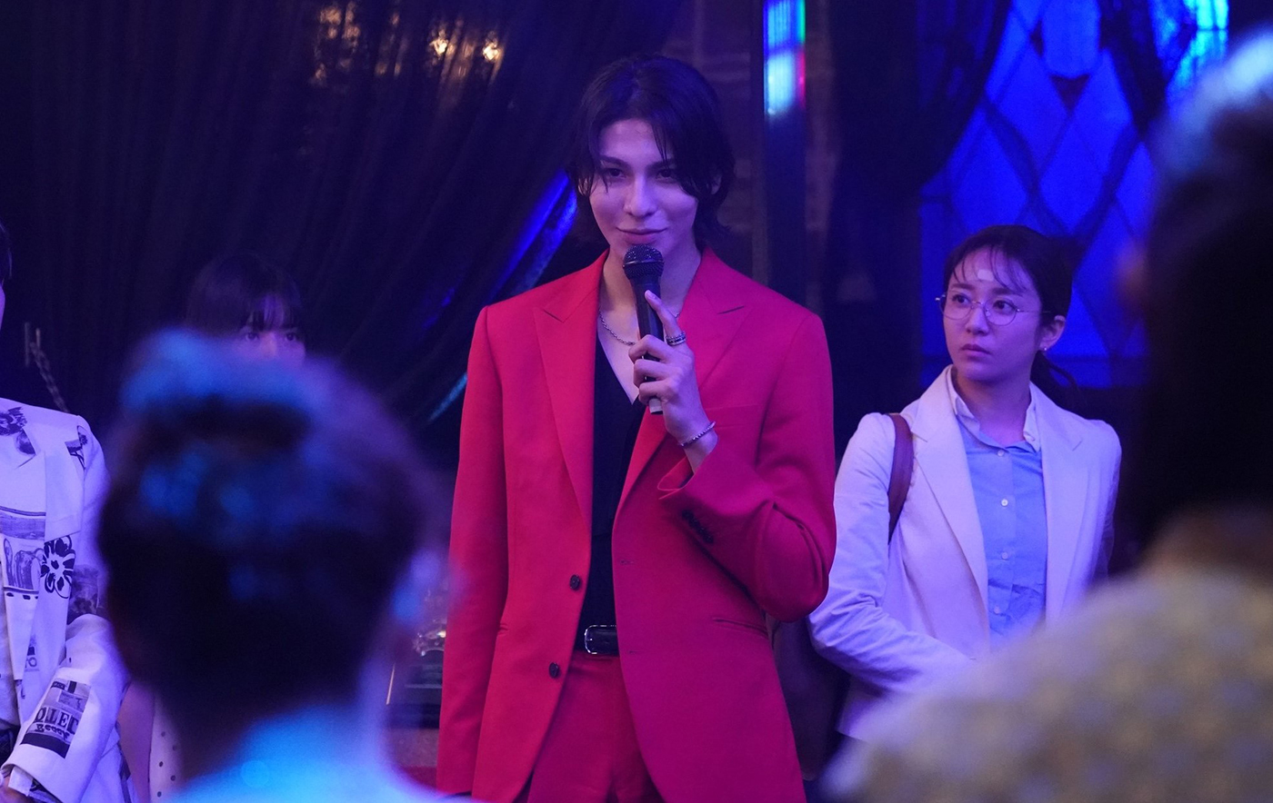 2枚目はホストクラブに出入りする生徒を探しに人生で初めてホストクラブを訪れた愛実の前に現れるカヲルのかカット。