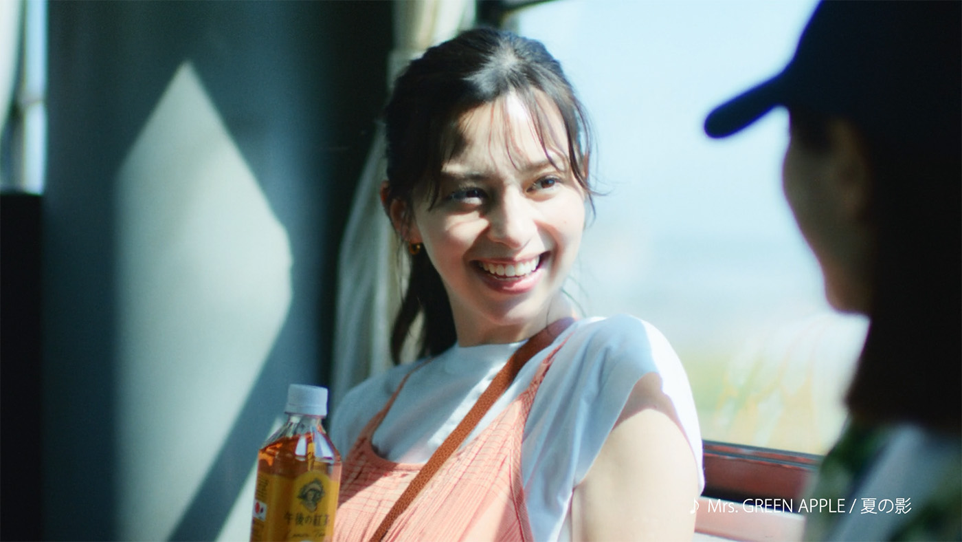 「夏の影」篇は、レモンティーを主役に、爽やかさとほのかな切なさが交錯する「夏の午後」を描くもの。新CM楽曲として、大人気3人組バンドMrs. GREEN APPLEが新曲「夏の影」を書き下ろした。夏の透明感を感じさせるメロディーと胸に残るノスタルジックな歌詞が、映像に深みを与えている。楽しさと切なさの対照的な感情が同時に存在する“夏の午後”のひとときを映し出す、目黒と中条の表情にも注目だ。