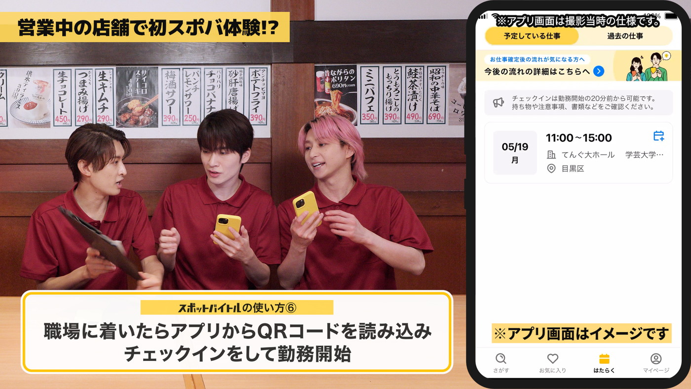 本企画は、スポットワークが未経験でも安心してチャレンジできる働き方であることや、空いた時間を有効活用できる働き方であることを、“スポットバイトル”のCMキャラクターを務める3人がスポットワークを実際に体験することで伝えていく内容となっている。