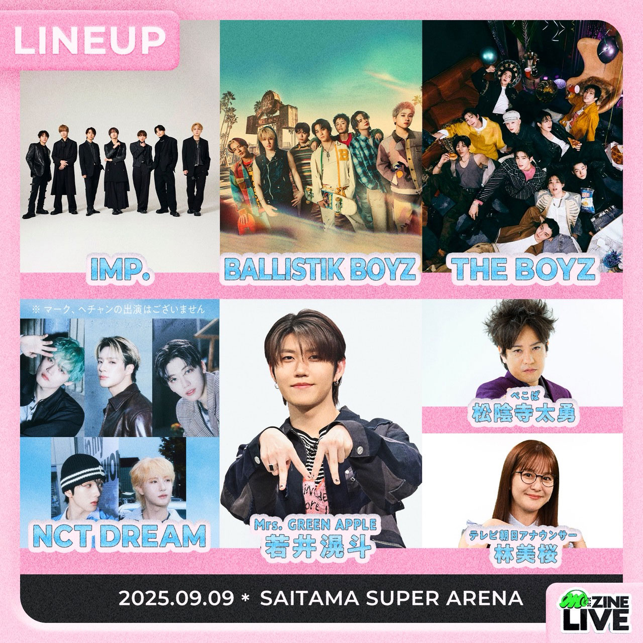 同イベントは、若井滉斗(Mrs. GREEN APPLE)、松陰寺太勇(ぺこぱ) 、林美桜(テレビ朝日アナウンサー)がMCを務めるテレに朝日の音楽バラエティ番組『M:ZINE(エンジン)』初の番組イベント。NCT DREAM、THE BOYZ、BALLISTIK BOYZが出演することも発表されている。