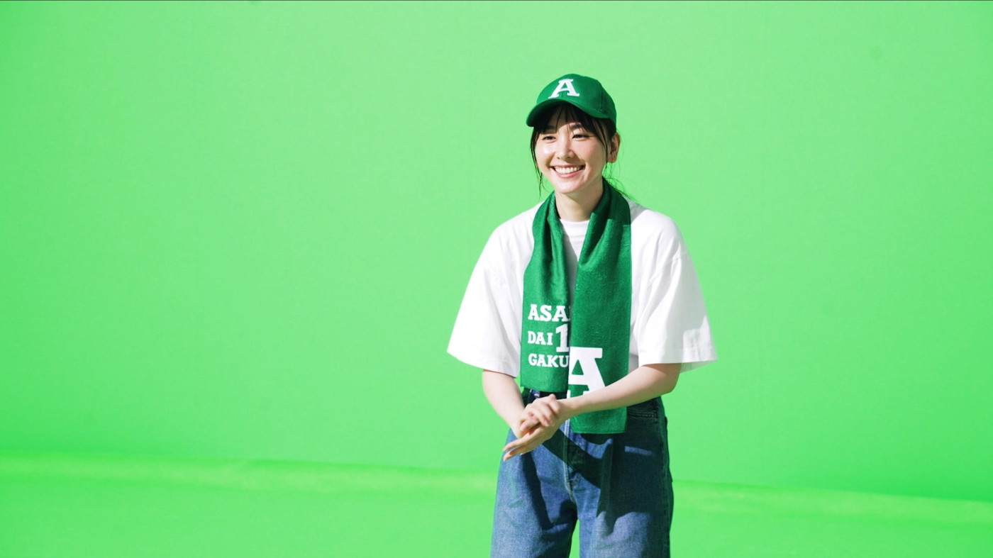 色が「十六茶」カラーというか、グリーンで。この(帽子に書かれたイニシャルの)“A”は“Asahi”の“A”とお聞きしました。(「十六茶」の)オリジナルグッズができました(笑)。Q.CMの見どころを教えてください。