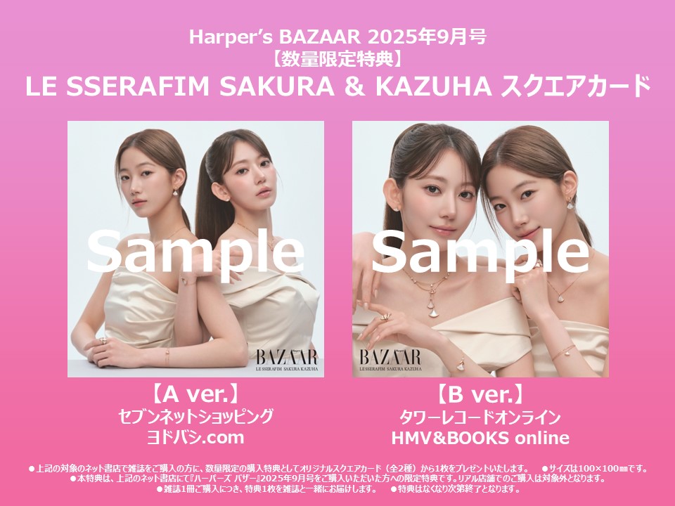LE SSERAFIMのSAKURAとKAZUHAが、『ハーパーズ バザー』9月号(7月18日発売)の表紙に登場する。