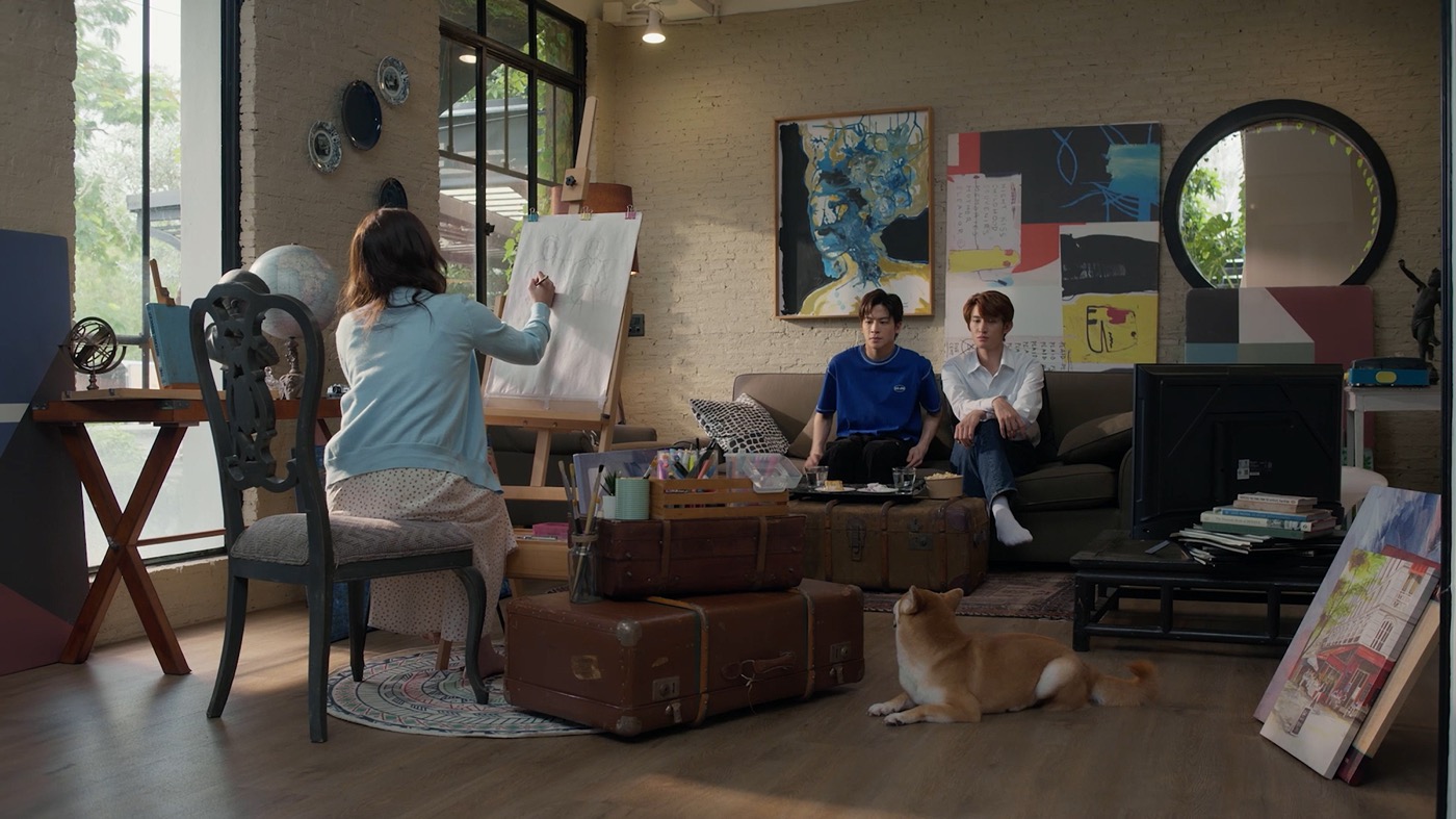 解禁されたEpisode4の場面写真は、本エピソードで初登場するジュンジの従妹で、キャラクターデザイナー・イーンス(フォンド=ナッティチャー)が、ジュンジとヒルをモデルに絵を描いている様子や、イーンスのアトリエでお茶をのむジュンジ、イーンスが飼っている愛らしい柴犬と戯れるヒルの姿が。
