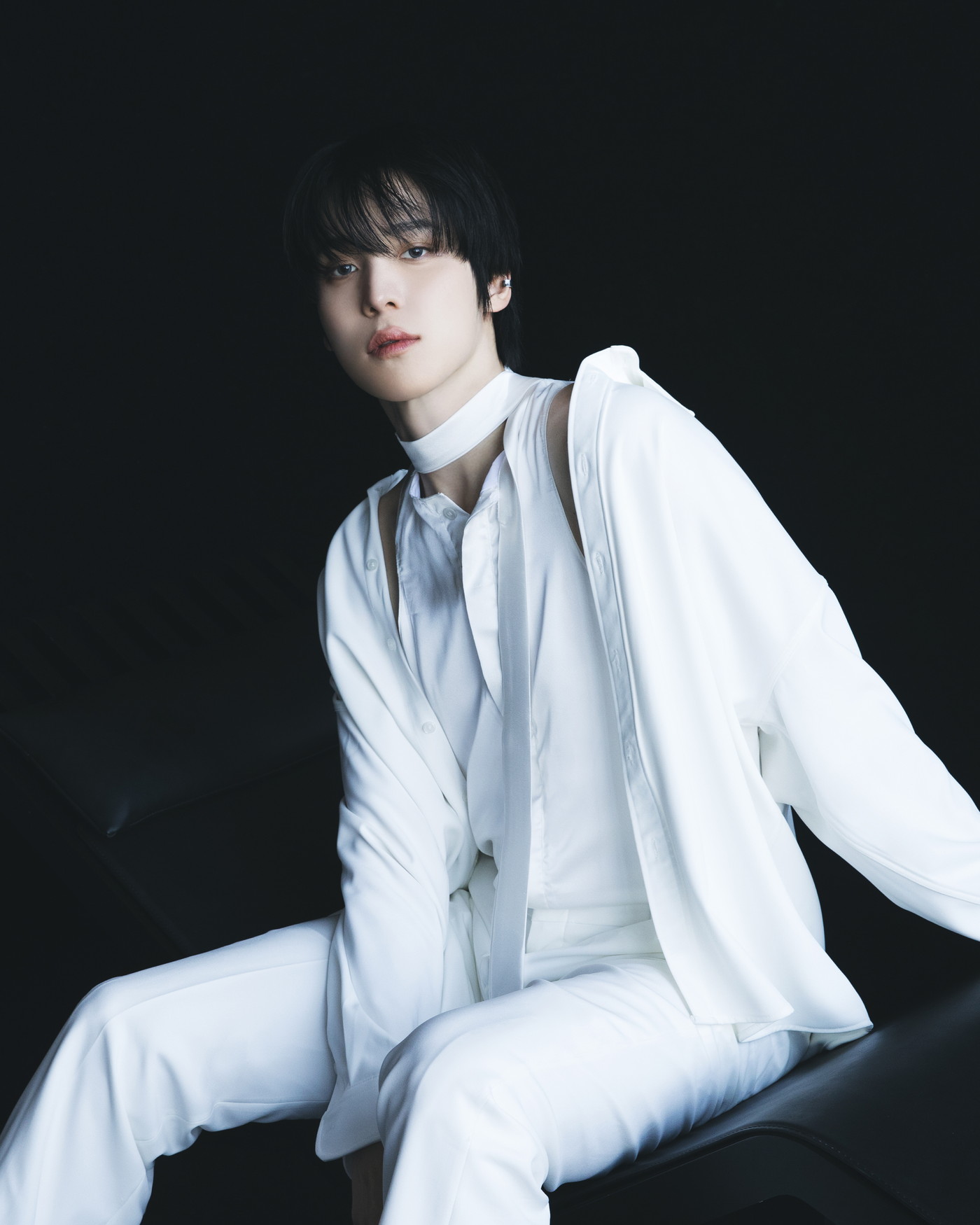 メンバーソロコンセプトフォト第2弾は、メンバーの魅力を際立たせる真っ黒な背景でシックな雰囲気を演出しながらも、オールホワイトコーデで柔らかな品の良さを演出。また、バストアップショットでは、吸い込まれるようなメンバーの魅惑的な眼差しで、ATEEZだけがもつ唯一無二の強さを秘めた感性を垣間見ることができる。