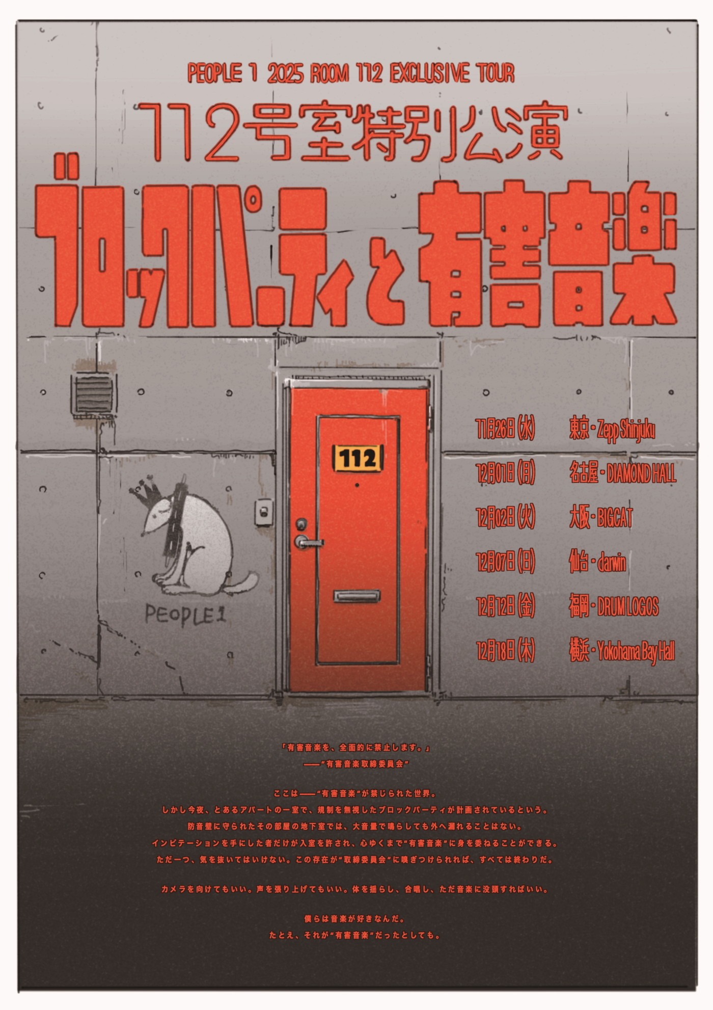 『PEOPLE 1 2025 ROOM 112 EXCLUSIVE TOUR 112号室 特別公演 “ブロックパーティと有害音楽”』の詳細はこちら