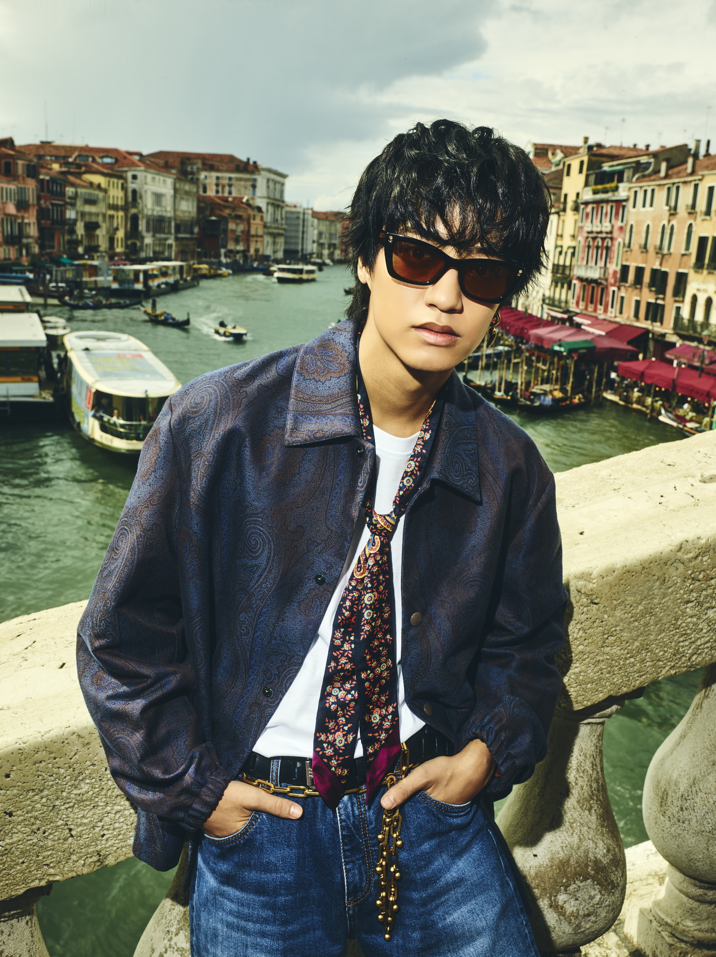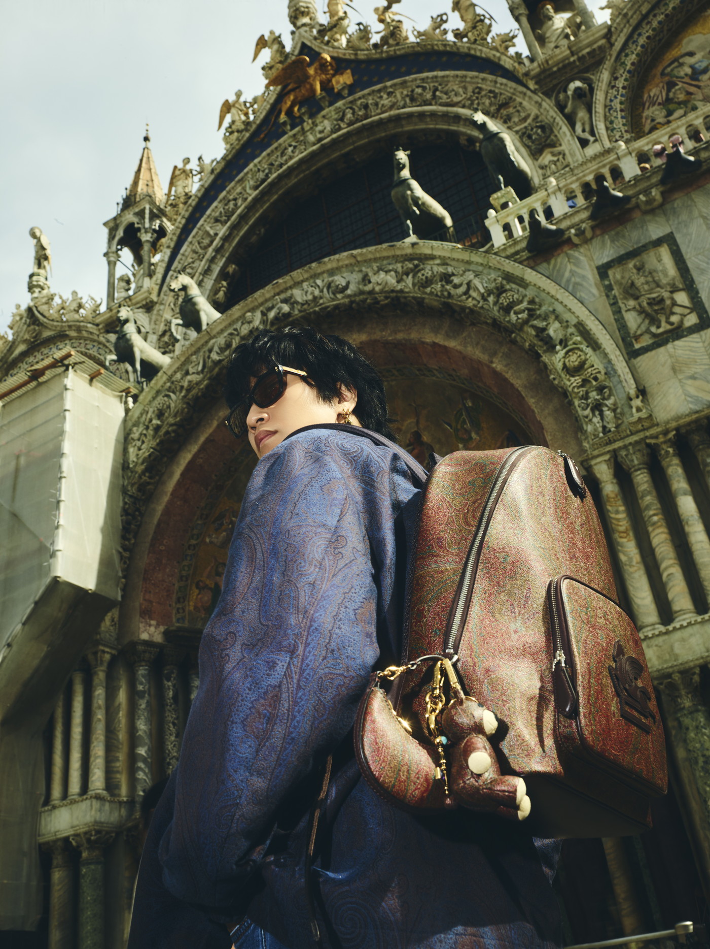 芸術的なヴェネツィアの街を歩く高橋の姿は、エトロのDNAである伝統と革新の融合を体現し、ブランドが大切にするヘリテージと今を生きる自由な感性が共鳴する、あらたな旅の物語を描き出す。